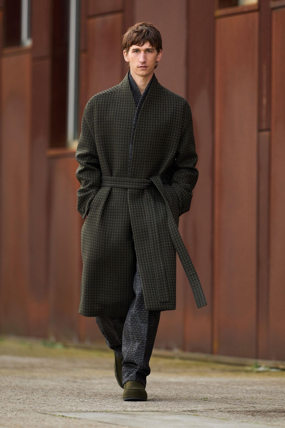 Ormai, dato per scontato che anche tra le mura domestiche bisogna vestire in modo dignitoso, la comodità e la libertà diventano imprescindibili. Lo straordinario jersey di cashmere di Ermenegildo Zegna ne è la prova. Alessandro Sartori, direttore artistico del brand ha dato vita a una collezione di altissimo pregio e fattura. «Stiamo tutti vivendo una realtà diversa caratterizzata da nuove esigenze che ci portano verso una forma mai vista prima in termini di stili di vita e attitudini» ha spiegato Sartori. «È esattamente in un momento come questo, in cui tutto viene messo in discussione, che noi di Zegna abbiamo deciso di fare un (RE)SET e guardare alle origini per reinterpretare i nostri codici stilistici al fine di riconcepire lo stile dell'uomo contemporaneo. Il nostro pubblico e privato si fondono e danno vita ad un nuovo modo di vestire, in cui comfort e stile si integrano per creare una nuova estetica». Vari elementi giocano con forme, pesi e materiali: le giacche da lavoro in cashmere, annodate come accappatoi, diventano capi sportivi; i completi ibridi sono in cashmere double; le maglie inedite sostituiscono le camicie; i nuovi pullover in cashmere infeltrito sono lavorati a tricot, oppure, realizzati in pelle, vengono indossati come outerwear; i pantaloni e le giacche sono in shearling. Anche le borse, simbolo dell'accessorio da lavoro per l'uomo, sono decostruite.