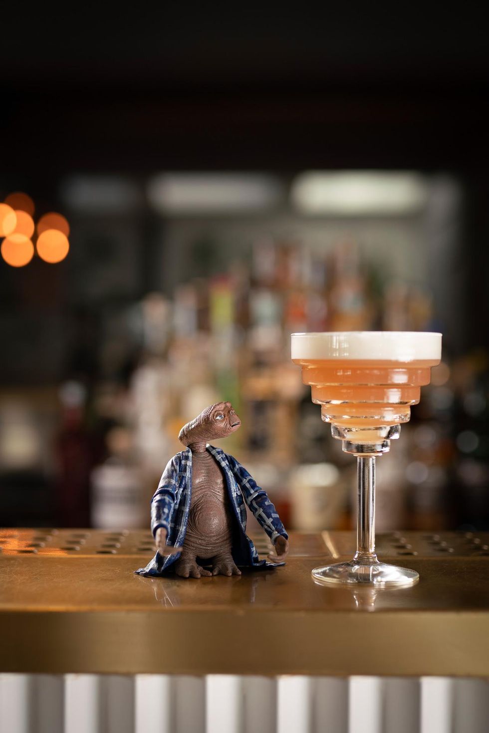 La bicicletta dell’alieno ET ci porta fino agli anni Ottanta, distillati nel cocktail «A casa lontano da casa». Una riedizione del classico old fashion con bourbon alla banana e bitters al cioccolato per celebrare i 40 anni di questo grande classico.
