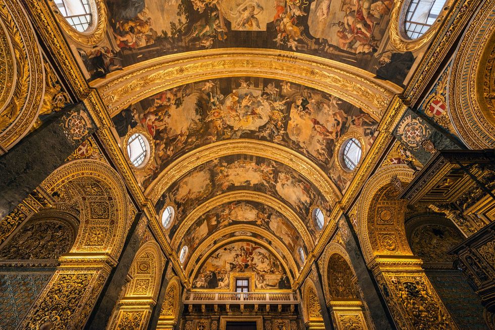 I Cavalieri di San Giovanni, che pagarono la Concattedrale di San Giovanni, commissionarono l'interno barocco pesantemente dorato per indicare il loro intenso fervore religioso. Fu completata nel 1666, mentre Londra bruciava nel Grande Incendio. L'Oratorio contiene la straordinaria opera di Caravaggio, La decapitazione di San Giovanni Battista. Il dipinto utilizza luci e ombre per ottenere un effetto drammatico ed è l'unica opera che Caravaggio ha firmato, nonché il suo dipinto più grande.