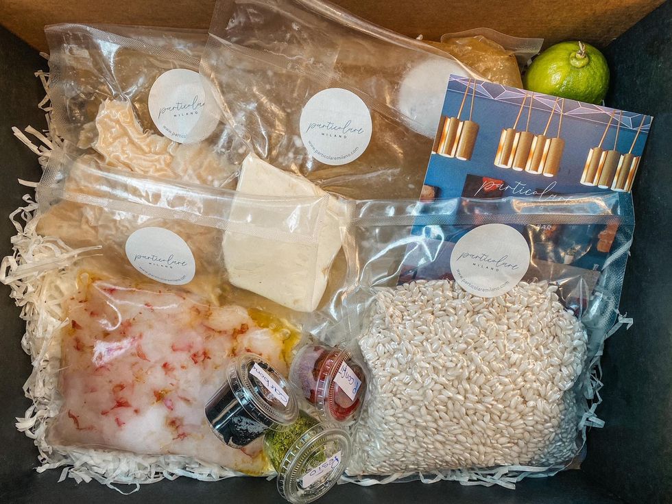 Chi ha detto che il delivery è solo piatti pronti? Lo chef Andrea Cutillo di Particolare Milano ha ideato delle «cooking box» con dosi per due persone per riprodurre nella cucina di casa le sue ricette gourmet.