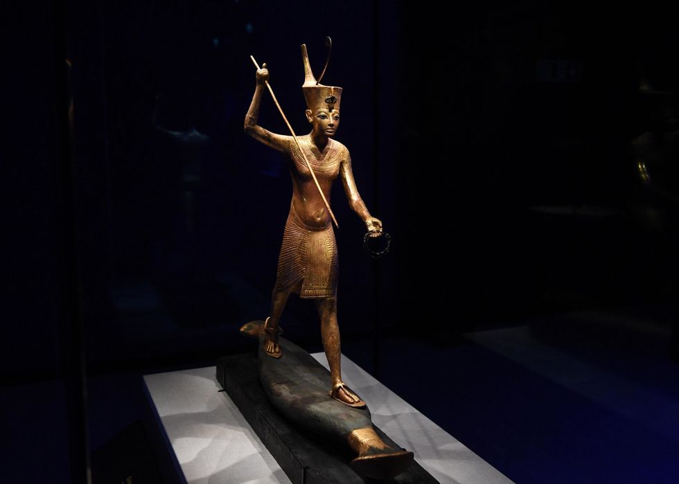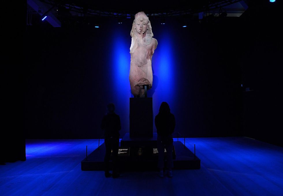 Se ad aprire l'esposizione è un filmato multimediale proiettato in una stanza buia su uno schermo curvo per aumentare l'effetto di «immersione nella storia», a concludere il percorso è una statua di circa 5 metri d'altezza illuminata da un fascio di luce. Il reperto, originariamente alto oltre 5 metri, ritrae il giovane Tutankhamon, le sue paffute guance e le labbra carnose. Un vero e proprio colosso in quarzite che, inizialmente, si pensava ritraesse Ay, il successore del faraone bambino, e poi ancora Horemheb, che successivamente fece incidere il suo nome nella pietra. Gelosia della potenza di quel fanciullo salito al trono e scomparso troppo presto?