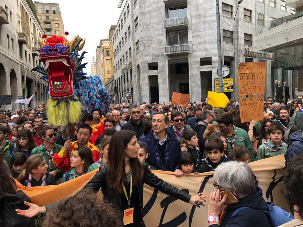 «Da qui», scriveva Zingaretti su Twitter, «da manifestazioni come questa, va anche ricostruita la sinistra. Questo governo non garantisce lavoro, sviluppo e benessere ma distribuisce tanto odio, rancore e divisione. L'Italia non può essere questo», cinguettava. «Il Pd unito è indispensabile per battere i seminatori d'odio in questo Paese, quelli che pensano che si costruisca il futuro dell'Italia sul rancore «, diceva Martina, «questa piazza ci chiede unità e apertura e noi non dobbiamo assolutamente deluderla». Senza contare i tanti volti dello spettacolo che non dicono mai di no a un bel bagno di folla. C'erano Malika Ayane, Lella Costa, Giobbe Covatta, Claudio Bisio, Ornella Vanoni, Roberto Vecchioni, solo per citarne alcuni. In due ore e mezza, insomma, il centro di Milano si è trasformato in un afro street party.