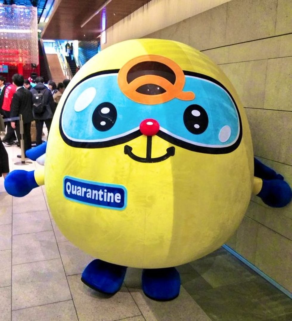 La caratteristica migliore di Quaran è il suo dorso, che ha la forma della lettera 'Q', ovviamente. È stato creato principalmente per promuovere il lavoro dell'Ufficio informazioni sul Covid19. Si dice che la mascotte viaggi in tutto il mondo per evitare che oggetti illegali e pericolosi si facciano strada in Giappone. Da notare gli occhiali a portata di mano di Quaran, che aiutano a individuare le malattie infettive, le importazioni di cibo proibite e altre violazioni, mentre lo scudo è fatto per proteggere i cittadini giapponesi dalle cose pericolose. Come il virus.