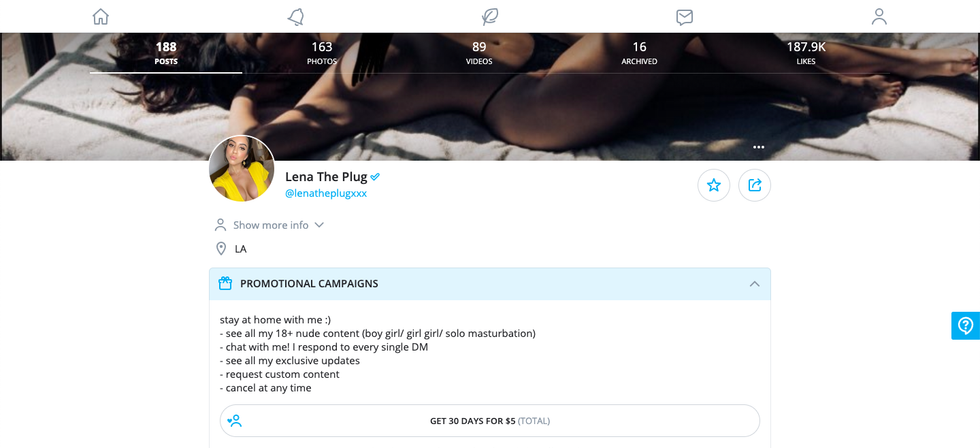 Cos'è Onlyfans? In un articolo pubblicato nel febbraio 2019, il New York Times lo ha definito «il paywall del porno». Il suo concept è semplice e intuitivo. Basta infatti iscriversi sulla piattaforma e iniziare a pubblicare le vostre foto più esplicite, quelle che su Instagram verrebbero censurate. C'è però un particolare: per visualizzare i contenuti i vostri «fan» devono sottoscrivere un abbonamento che va dai cinque ai 20 dollari. I media pubblicati sono completamente a discrezione dell'utente, si va quindi da immagini sensuali a veri e propri nudi, passando anche per video hard. Per questo motivo Onlyfans vanta la presenza di alcune delle pornostar più famose al mondo, a partire dalla numero uno secondo Pornhub: Lana Rhoades. Quest'ultima ha dichiarato di guadagnare almeno 20.000 dollari al giorno attraverso la piattaforma, semplicemente scambiando messaggi con i suoi followers. La pornostar Lana The Plug ha invece spiegato nel dettagli al Daily Star il funzionamento dell'app. I suoi 62.000 fan pagano dieci dollari ogni mese per avere accesso ai contenuti che la ragazza decide di postare, per un guadagno complessivo di circa 500.000 dollari (Onlyfans trattiene solo il 20% della fee di abbonamento). La 28enne offre anche contenuti personalizzati per un prezzo extra, ma ha raccontato che il servizio a pagamento più richiesto è quello del «dick rating»: i suoi followers inviano una foto delle loro parti intime da far giudicare da Lana, a volte basta solo un numero da uno a dieci.