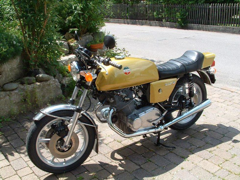 Il marchio di Breganze (Venezia) aprì il decennio da esordiente nelle grosse cilindrate e in difficoltà per l'insuccesso commerciale di scooter e motoleggere degli anni sessanta. Il patron dell'azienda veneta a conduzione familiare Massimo Laverda capì durante un viaggio in America che il futuro riguardava le maximoto. Da queste premesse nacquero le tre quarti di litro che avrebbero caratterizzato la produzione del decennio, anticipate alla fine degli anni sessanta dalla 650, la prima Laverda di cilindrata superiore ai 500 cc. e nel 1969 con la prima 750. L'anno successivo arriverà il successo tanto atteso con la 750 SF, che in breve tempo si porterà ai vertici delle vendite nella sua categoria. La sigla SF non aveva nulla a che vedere con l'impostazione sportiva della moto, ma significava "super freni", in quanto furono adottati già nel 1970 i dischi. Per quanto riguardava il propulsore l'idea del progetto seguì l'esempio delle giapponesi che Laverda aveva studiato oltreoceano, già ben inserite nel mercato Usa. Si trattava di un bicilindrico inclinato di 25° in parallelo molto massiccio, del peso di oltre 90 kg. Questa caratteristica tuttavia non disturbava la linea filante della SF alla quale regalava 60 Cv, un risultato onesto per una velocità di punta di 190 Km/h. Non la più veloce in assoluto ma certamente una moto estremamente affidabile e di ottima fattura, aspetti premiati da anni di vendite esaltanti che fecero superare a Laverda le avversarie più temute come la Honda CB750 Four.