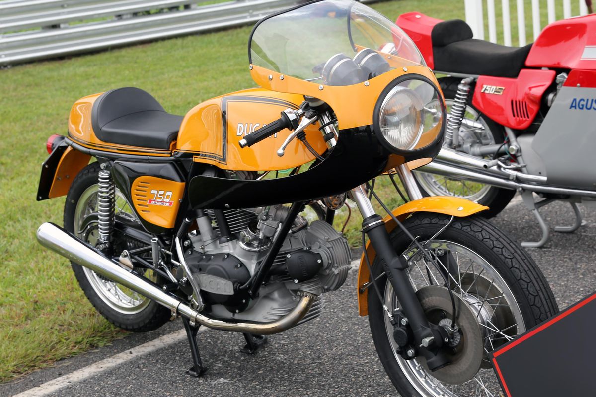 La casa bolognese si confermò come portatrice dell'impostazione "pistaiola" dei modelli, già mostrata negli anni sessanta, con l'esordio della 750 GT. Per la Ducati e per il mondo delle due ruote portava con sé una rivoluzione: il motore bicilindrico a "L" con distribuzione desmodromica che caratterizzerà il marchio per gli anni a venire. La sette e mezzo fu progettata e sviluppata nel 1970, andando ad insidiare le concorrenti Guzzi e Benelli. Le prestazioni erano esaltanti (210 Km/h di velocità massima) ma l'impostazione troppo sportiveggiante dell'assetto di guida portò la casa di Borgo Panigale e più miti consigli, considerando la crescente domanda di maximoto ad uso turistico. Nelle versioni successive dal 1973 in poi si abbandonarono i semimanubri per una guida più confortevole così come la sella, che divenne più adatta ad ospitare il passeggero non previsto dai puristi della pista. Per i più corsaioli Ducati affiancò dal 1972 la versione Sport, caratterizzata dal codino, dalla sella monoposto e naturalmente dai semimanubri e da una semicarena che avvolgeva il faro tondo. L'anno successivo, sull'onda delle vittorie nelle competizioni internazionali, nacque la serie SS con la 750 che riprendeva la meccanica mista tra GT e Sport, per una potenza di 72 Cv e 220 Km/h di punta. La carenata, che riprendeva i colori delle Ducati della scuderia vincente, fu proposta in versione ancora più spinta con quello che sarà il modello più iconico del decennio per Ducati, la 900 SS, costruita dal 1975 al 1982. Derivata direttamente dalle corse, la sportiva di Borgo Panigale erogava ben 80 Cv alla ruota per una velocità di punta prossima ai 230 Km/h e l'impianto frenante a doppio disco anteriore. Fu l'ultimo modello di maximoto Ducati (costruito in 3 serie) uscito dagli anni '70. La 900 SS sarà sostituita dalla 900 S2, dalla linea più squadrata tipica degli anni ottanta.