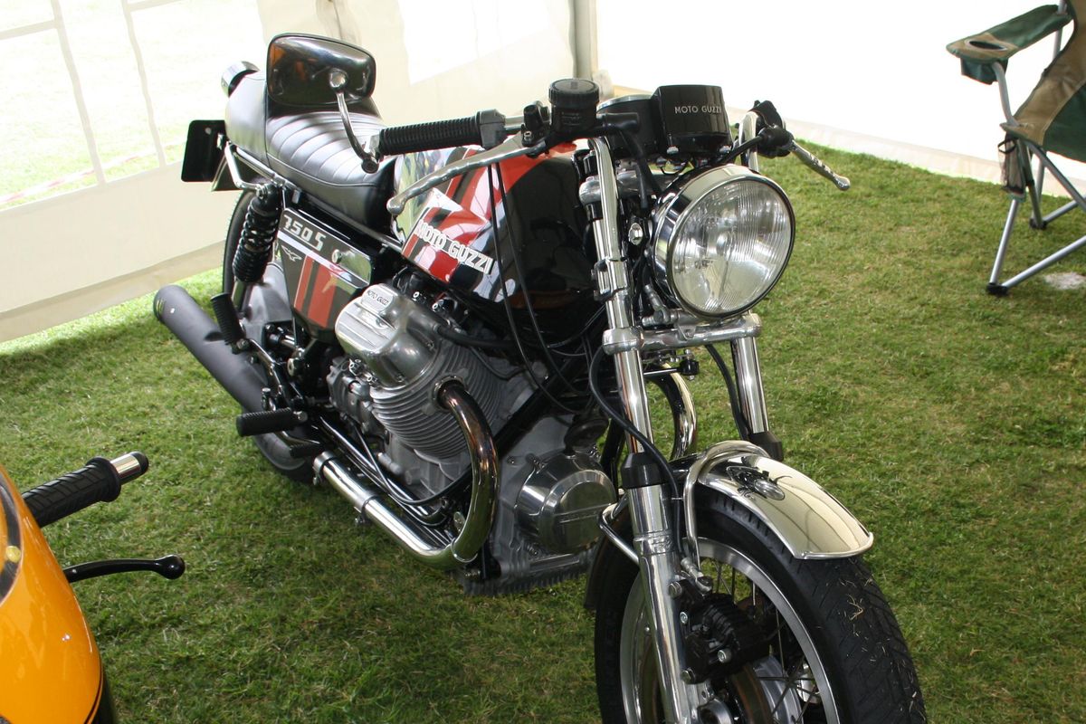 La casa di Mandello del Lario si presentò all'appuntamento col nuovo decennio forte di un bicilindrico collaudato alla fine degli anni sessanta, il motore a V di 45° che equipaggiò le mastodontiche V7 Special e California, apprezzate anche oltreoceano e che faceva dimenticare il vecchio monocilindrico orizzontale da 500cc nato nell'anteguerra. La crescente influenza delle concorrenti del sol levante e la domanda di moto sempre più spinte fece nascere la V7 Sport nel 1971, un simbolo per tutti gli amanti delle café racer. Un numero ristretto di esemplari di pre-serie, caratterizzati dal telaio a vista di colore rosso, sono oggi ricercatissimi dai collezionisti. La V7 Sport era una naked dotata di trasmissione a giunto cardanico (tipica poi di tutta la produzione Guzzi degli anni di gestione Seimm-DeTomaso) era una delle moto più performanti sul mercato, che non aveva nulla da invidiare in quanto a prestazioni rispetto alla concorrenza nipponica. 210 Km/h era la velocità di punta raggiunta grazie al bicilindrico da 72 Cv, dotato di una grande accelerazione sulla partenza da fermo. Purtroppo le ristrettezze economiche e la necessità di risparmio dell'azienda azzopparono una moto natta sotto i migliori auspici. L'aspetto più evidente era che questa maximoto montava ancora entrambi i freni a tamburo, una pecca grave per una moto con quelle prestazioni. Un tardivo rimedio si ebbe soltanto con l'evoluzione della Sport, la Guzzi 750S, caratterizzata dal colore nero e la doppia striscia "muscle" su serbatoio e bianchetti rossa o verde. Questo modello montava finalmente un doppio disco anteriore, mentre le prestazioni erano pressoché identiche a quelle della V7 Sport. L'ultima serie, la S3, fu dotata anche del disco posteriore e della frenata integrale tipica delle Guzzi del decennio successivo