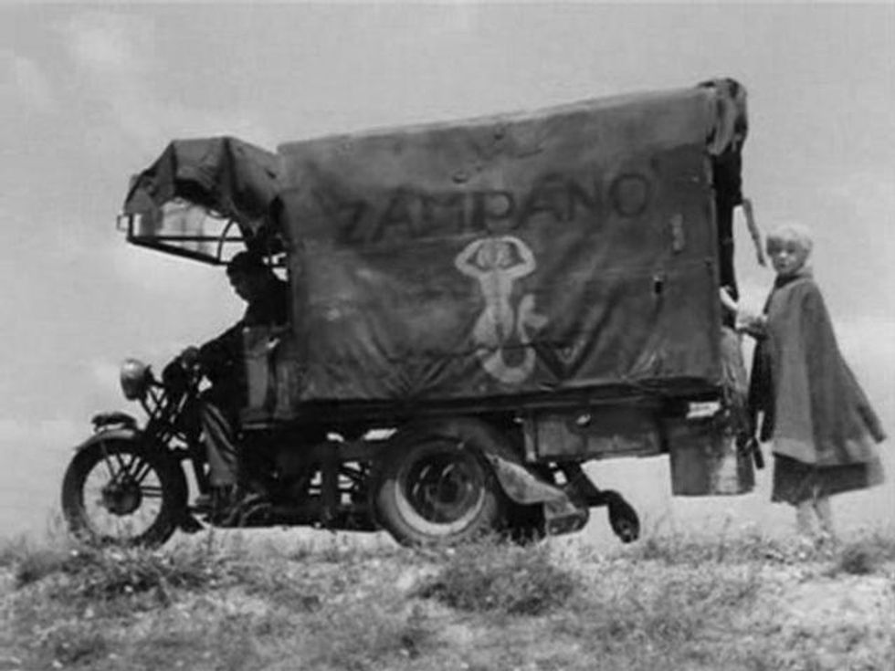 Il marchio Sertum, oggi pressoché dimenticato, fece una selle sue ultime sfuggenti apparizioni in uno dei capolavori più celebrati del maestro Federico Fellini. Ne «La strada» del 1954, un vecchio motocarro telonato fu la casa viaggiante del perfido saltimbanco Zampanò (Anthony Quinn) e della sua giovane assistente Gelsomina (Giulietta Masina). A guidare il duo nel viaggio attraverso un’Italia povera e contadina del dopoguerra, il motore 500cc di un Sertum motocarro del 1944. Quel motore era come il cuore di un nobile costruttore (purtroppo) decaduto. Prima della guerra, quel marchio nato a Milano sedeva accanto alle grandi Guzzi, Benelli, Gilera e Bianchi nella cosiddetta «pentarchia» dell’industria motociclistica italiana.