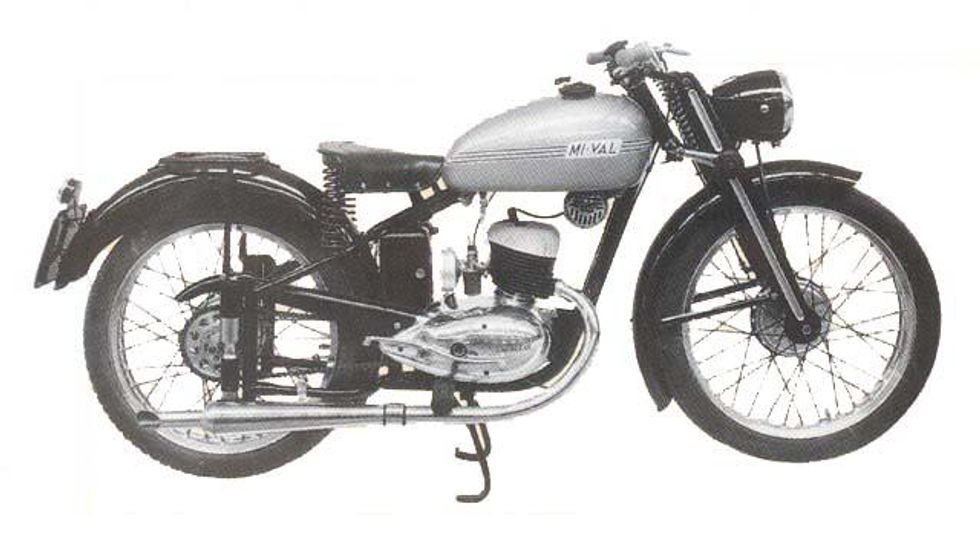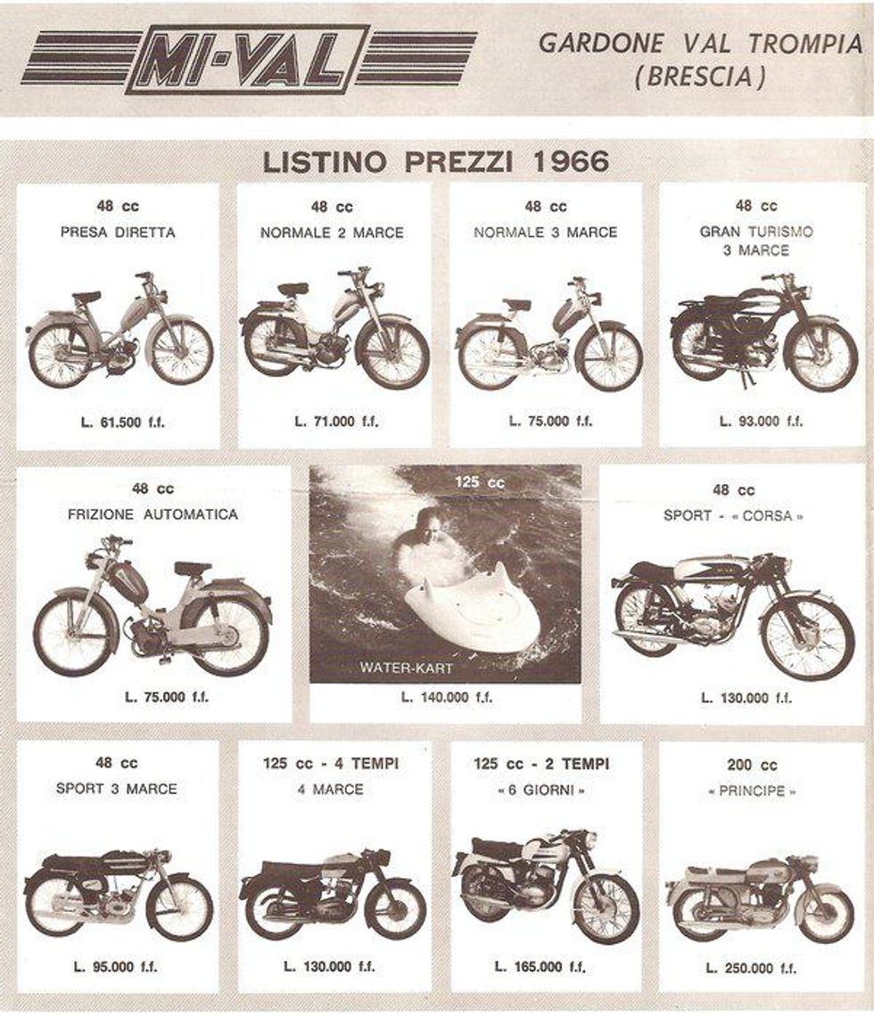 Gardone Val Trompia, in provincia di Brescia, è da secoli patria delle lavorazioni metalliche. Durante i mesi della Repubblica Sociale un’importante officina meccanica di Bologna trasferì nella cittadina delle prealpi la produzione per sfuggire all’avanzata alleata e ai bombardamenti, che la colpiranno il 25 settembre 1943. Si trattava delle Officine Minganti il cui direttore, l’ingegnere Ettore Minganti, era un esponente di spicco del fascismo bolognese. Nella nuova sede in Val trompia le officine proseguirono la produzione di utensili per la grande industria, in particolare trapani e torni. Alla fine della guerra il Cln bolognese spinse perché la fabbrica riaprisse i battenti a Bologna, richiesta che fu soddisfatta ma soltanto dai parenti di Ettore. Quest’ultimo, temendo feroci ritorsioni per il suo passato, rimase nel bresciano e nel 1950 decise di far parte della corsa alla prima motorizzazione popolare italiana fondando la Mi-Val, acronimo di Minganti Val Trompia. Alla nuova avventura industriale presero parte anche Giuseppe Beretta (allora patron della storica fabbrica di armi), il costruttore motociclistico pesarese Giuseppe Benelli e Guglielmo Castelbarco. Sin dall’inizio, la Mi-Val ebbe come obiettivo industriale quello della realizzazione di motoleggere, come richiesto dal nascente mercato del dopoguerra, che avessero caratteristiche di solidità e semplicità nella manutenzione. Il modello fu una moto tedesca, la DKW 125, che fu praticamente replicata dall’azienda Valtrompina con la MI-Val «125-T», uno dei modelli di maggior successo, poi adattato alle gare di regolarità. Gli anni Cinquanta segnarono la massima espansione per la Mi-Val, che alla prima quarto di litro due tempi affiancò le cilindrate 175 e 200cc. Particolarissima fu la costruzione su licenza dell’azienda ex-aeronautica tedesca Messerschmitt di una microvettura a tre ruote con i posti in tandem e motore motociclistico. Caratteristica era la cabina, direttamente derivata da quella dei caccia della Luftwaffe. La diffusione delle utilitarie pressoché contemporanea, ne stroncò la carriera commerciale. Alla morte di Ettore Minganti la crisi per le motociclette si profilava all’orizzonte. Rilevata dalla Beretta, la Mi-Val si gettò nell’arena dei ciclomotori con propulsori e parti realizzate da terzi (Franco Morini, Minarelli) realizzando una serie di 50cc. stradali che tuttavia non riuscirono a far sopravvivere la produzione, che cessò definitivamente nel 1968. La fabbrica di Gardone, dopo aver mutato il nome in Metalmeccanica Italiana Val Trompia proseguì la produzione macchinari e utensili industriali, realizzando negli anni alcuni prodotti all’avanguardia. Così come le moto erano state le prime ad avere la quinta marcia, la Mi-Val costruì e commercializzò in Canada il «Delfino», un acquascooter mosso da un motore a due tempi che accompagnava il nuotatore o il sub alla velocità straordinaria di 25 km/h sul pelo dell’acqua. Il problema era il propulsore alimentato a miscela d’olio al 10%, che risultava in residui altamente inquinanti. Un’altro oggetto avanti con i tempi concepito dalla Mi-Val fu il Cinebox, un juke box con schermo catodico che riproduceva i video delle canzoni delle classifiche anni Sessanta. Concepito quando la tecnologia audiovisiva non era abbastanza sviluppata, il Cinebox fu ritirato dalla produzione per la tendenza dell’apparecchio a surriscaldare eccessivamente.
