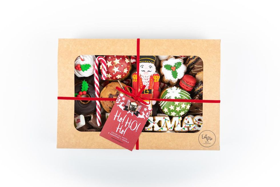 Sono state create una serie di box - dolci e salate - perfette per le feste. «Ho ho ho» racchiude la magia dei dolci tradizionali natalizi: nutcraker cookie, pandorini, mini panettoni glassati, candy cane, biscotti al cioccolato, Christmas donuts, muffin al cioccolato, torrone nocciolato fondente, scaglie di cioccolato artigianale con nocciola Tonda Gentile DOP dei Monti Cimini, grissini glassati e tante altre squisite dolcezze natalizie.
