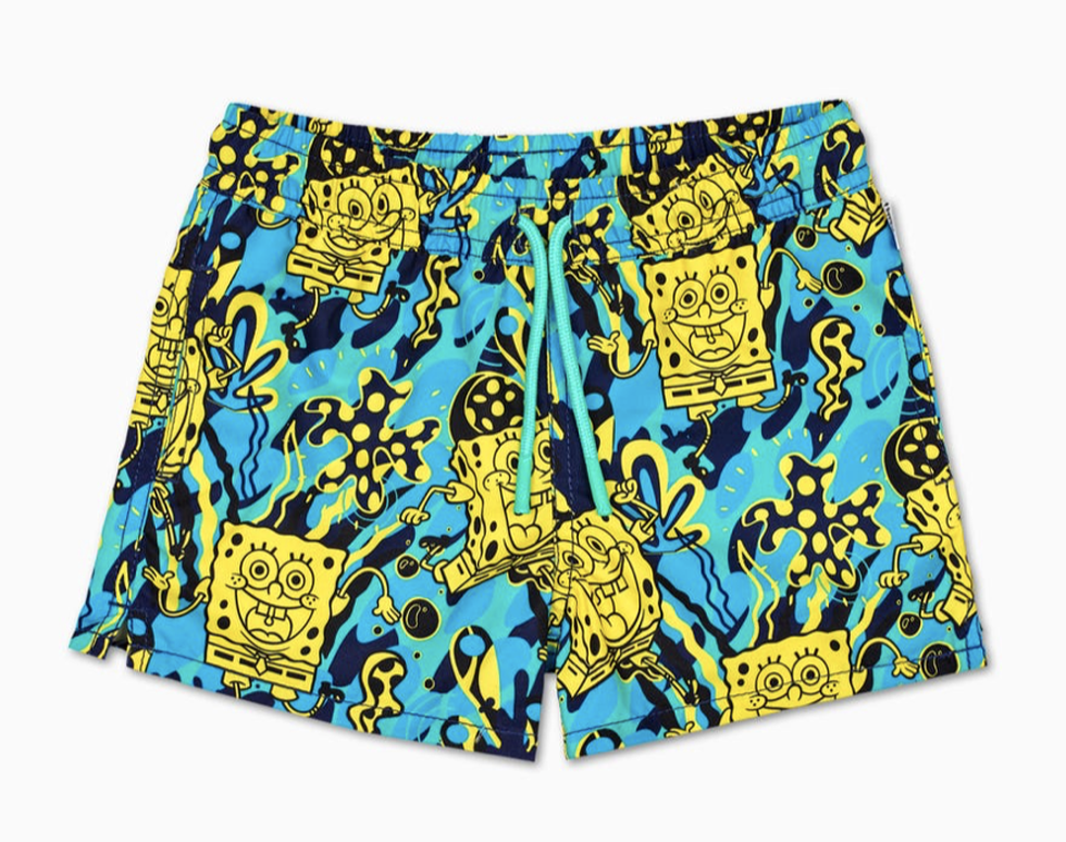 SpongeBob e Happy Socks invitano i trendsetter sotto il mare nella casa di SpongeBob a forma di ananas. I nuovi costumi da bagno e pantaloncini da bagno per bambini sono abbinati ai modelli per adulti. La nuova capsule per bambini presenta stili sia per ragazze che per ragazzi, in nove stampe uniche con una palette estiva vivace che fonde personaggi ed elementi distintivi della serie animata con il modello Big Dot firmato Happy Socks.