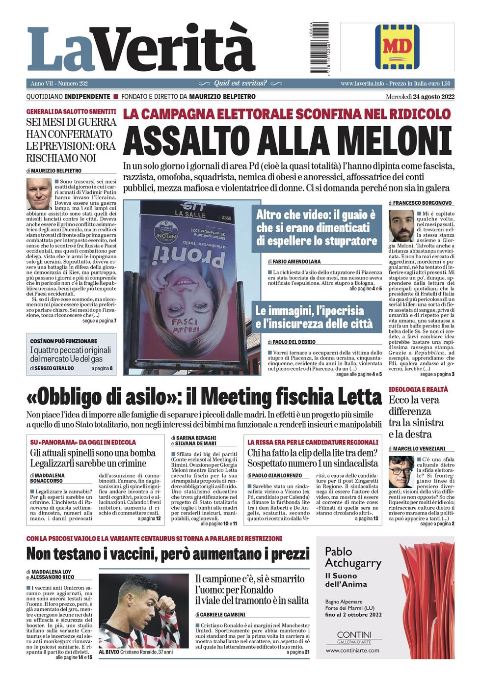 La mordacchia fa pubblicità a «Il campo dei santi», portato in edicola dalla «Verità».