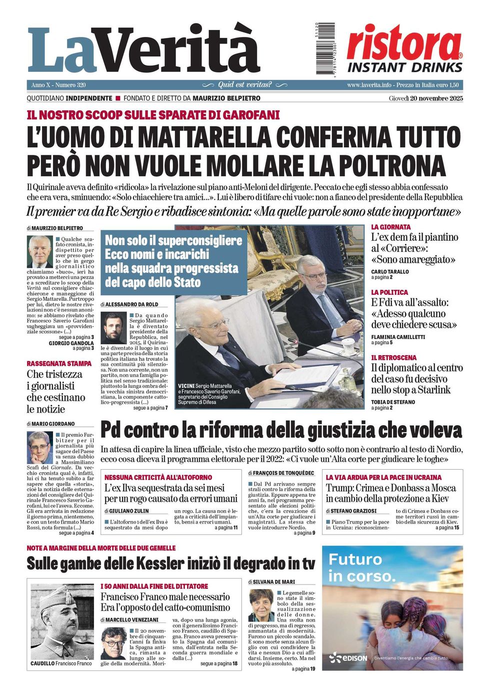 Qualche scafato cronista, indispettito per aver preso quello che in gergo giornalistico chiamiamo «buco», ieri ha provato a metterci una pezza e a screditare lo scoop della Verità sul consigliere chiacchierone e maneggione di Sergio Mattarella. Purtroppo per lui, dietro le nostre rivelazioni non c’è nessun anonimo: se abbiamo rivelato che Francesco Saverio Garofani vagheggiava un «provvidenziale scossone» per far cadere Giorgia Meloni, e la costituzione di una grande lista civica che la possa battere alle prossime elezioni, è perché delle sue parole abbiamo certezza.