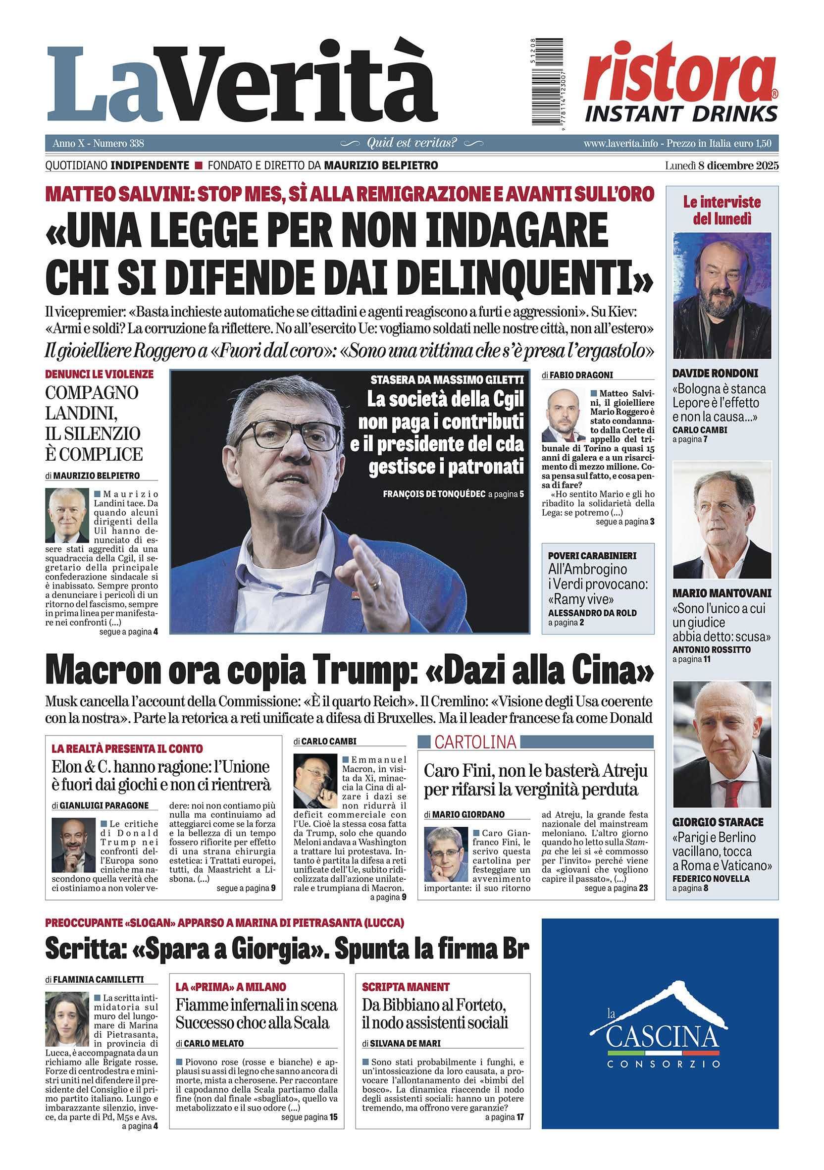 Edicola Verità | la rassegna stampa dell'8 dicembre