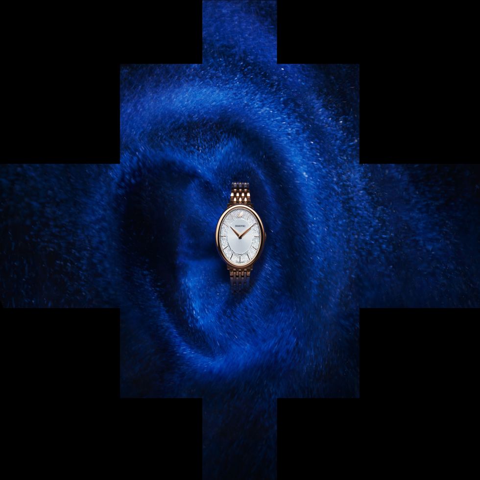 Swarovski celebra i suoi 125 anni all'insegna di tradizione, maestria e artigianalità. Negli ultimi due decenni il brand ha riscritto le regole del design degli orologi fashion, attraverso la sua sofisticata serie di segnatempo. Nel 2009, ad esempio, il visionario orologio D:Light fuse insieme l'innovativa tecnologia digitale con 171 cristalli Swarovski con taglio Xilion che si illuminavano per indicare l'ora. Poi, nel 2016, la linea Crystalline Oval puntò a massimizzare il glamour con una cassa riempita con oltre 1700 cristalli Swarovski.