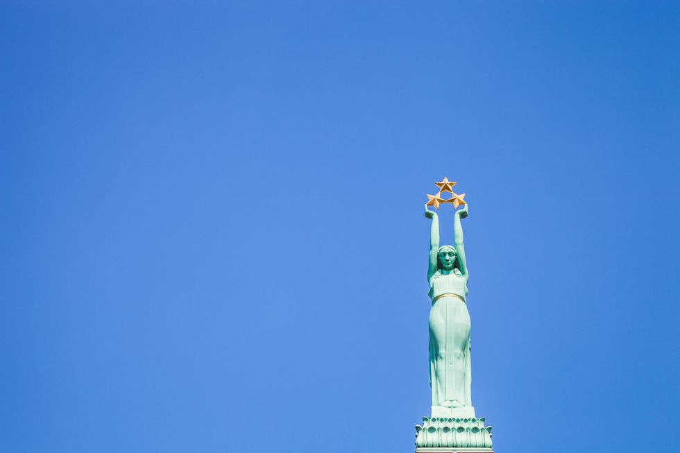 Monumento alla Libertà. È il simbolo della Lettonia. Con i suoi 42 metri di altezza, il monumentosi trova nel cuore di Riga. È il capolavoro del famoso scultore Karlis Zale. La scultura rappresenta una ragazza lettone che solleva tre stelle dorate che simboleggiano tre regioni lettoni. Le sculture e i bassorilievi attorno al monumento raffigurano invece la storia della Lettonia.