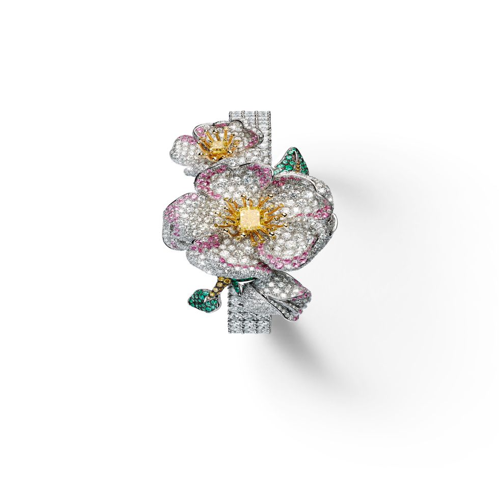 Tre i temi iconici. «Primavera» è un pezzo romantico, un bocciolo che rivela una grande rosa preziosa: c'è un diamante giallo da 1,45 carati, zaffiri rosa, smeraldi e brillanti bianchi, gialli, cognac e grigi. «Rosa dei Venti» combina armoniosa geometria con la delicatezza di un fiore di Lys dove, protagonista, è uno smeraldo da 11,49 carati, rubini, smeraldi, zaffiri e diamanti. «Mosaico» la cui superficie è formata da un motivo di cerchi concentrici, apparentemente non ha un inizio o una fine. Questo secret watch ha solo diamanti e spinelli neri, ma la perfezione del meccanismo e dell'incastonatura ha tutti i colori della poesia della grande oreficeria e gioielleria.