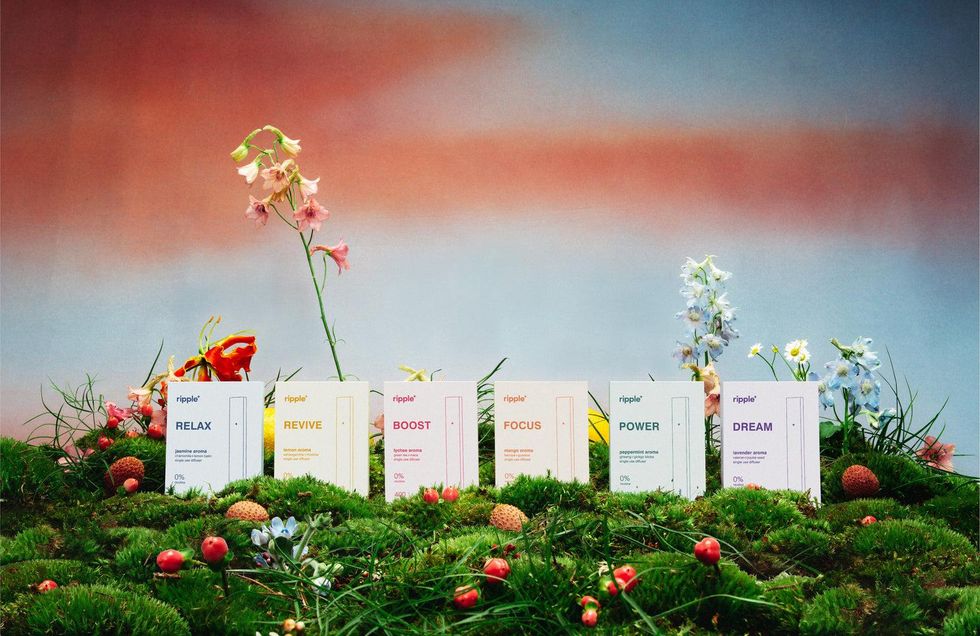 Ripple+ nasce Londra nel 2019 dai fratelli Sam e Lucie Beecham in risposta a quella che gli stessi definiscono «epidemia di vaping». I loro dispositivi - completamente privi di nicotina - sono progettati per riscaldare le miscele botaniche a una temperatura ottimale per il vapore da inalare - creando la perfetta soluzione di aromaterapia in movimento. Ogni “sigaretta” offre 400 inalazioni e mira a rispondere a una particolare necessità.