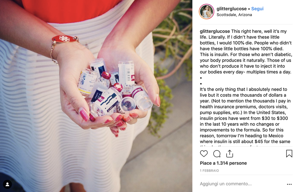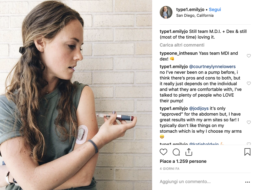Oggi il settore più attivo è quello dei diabetici di tipo 1. Per loro Instagram può essere una vera e propria miniera d'oro, grazie alle decine di aziende pronte a strappare assegni con cifre che vanno da 1.000 a 50.000 dollari in cambio di fotografie in cui si mostri come la vita può comunque essere bella e semplice anche portando sulla propria pelle un microinfusore d'insulina.
