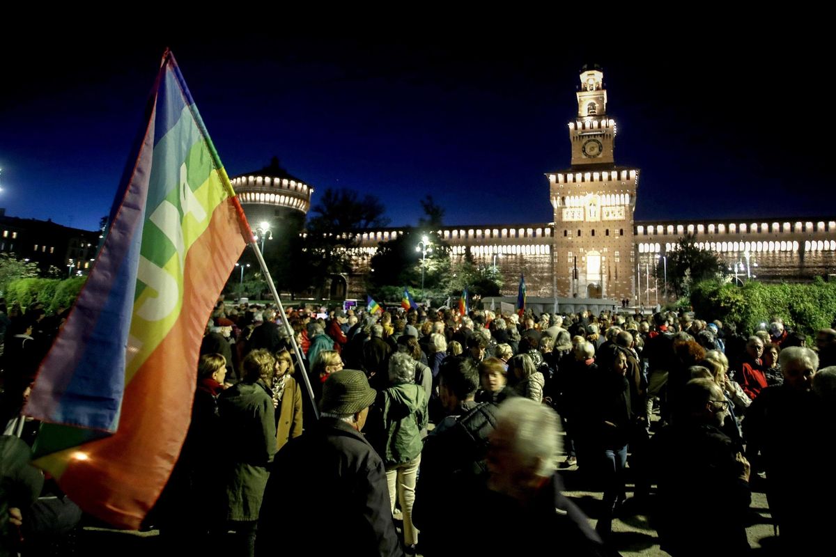 Manifestazione pacifista del 26 ottobre a Milano (Ansa)