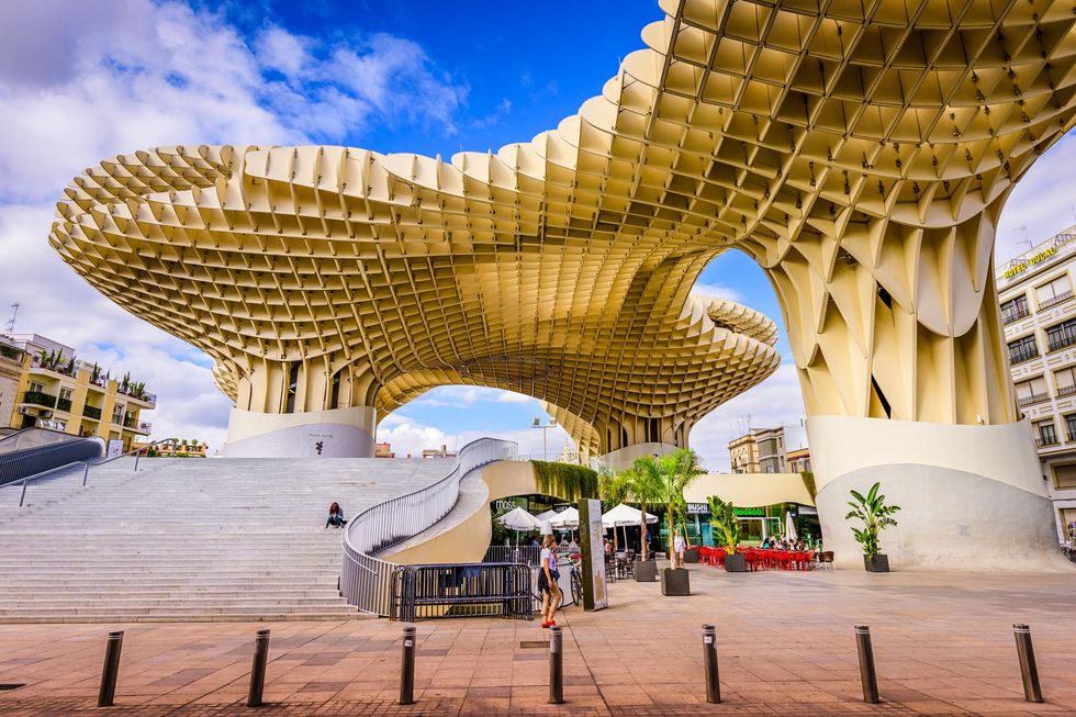 Iniziate la seconda parte delle vostre 48 ore a Siviglia con una visita al monumento Metropol Parasol, nel cuore del centro città. Questa straordinaria scultura in legno è stata costruita tra il 2005 e il 2011 ed è chiamata localmente Las Setas, o "i funghi", per la forma caratteristica delle sue ampie chiome. Si trova delicatamente appollaiata sopra le rovine romane - un fatto che ha reso la costruzione un progetto lungo e controverso - che sono visibili nel museo archeologico del piano terra, mentre una passerella sul tetto offre una vista panoramica della città.