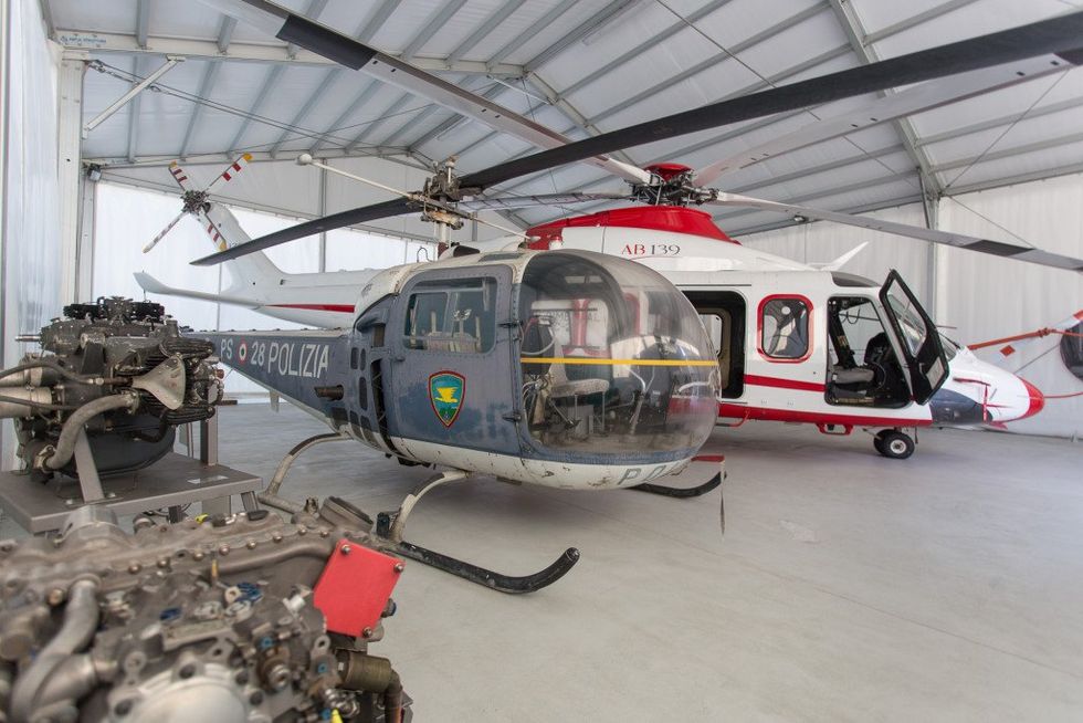 La produzione in campo aeronautico, come accennato precedentemente, occuperà un posto sempre più importante nella storia industriale della Agusta. Le restrizioni alla produzione di velivoli per l’Italia decaddero nel 1950, anno in cui il Paese era già nell’orbita del Patto Atlantico e tra i beneficiari del Piano Marshall. A Cascina Costa, accanto alla nuova produzione motociclistica, si riaffacciava timidamente quella degli aerei con alcuni prototipi destinati al mercato dell’aviazione civile come i bimotori e quadrimotori da trasporto AZ1 e AZ8, di fatto mai entrati in produzione. La svolta venne dal nuovo mercato dei velivoli a pala rotante nel 1952 quando Domenico Agusta fu introdotto da uno dei pionieri italiani dell’elicottero, il proprietario di Aersilta Leone Concato. L’aviatore e giornalista, acquirente dei primi elicotteri americani Bell 47 per l’aviazione civile italiana, introdusse Domenico Agusta presso la Bell Helicopters del Texas che era allora alla ricerca di un produttore europeo su licenza, data la crescente domanda mondiale. Fu così che l’accordo diede il via ad una storia industriale di successo che, a partire dal piccolo AB47 (dove AB sta per Agusta-Bell) adottato anche dall’aviazione dell’Esercito vide l’assemblaggio di modelli che fecero la storia del volo ad ala rotante dai monoturbina AB204 e 205, versioni civili dell UH-1 Iroquois protagonista della guerra del Vietnam alle evoluzioni biturbina AB212 e AB412 (versione quadripala). La storia produttiva dell’Agusta non si limitò ai modelli su licenza, ai quali si affiancarono progetti originali e di grande successo. Sopra tutti l’Agusta A109, un biturbina multiruolo a carrello retrattile dal design innovativo e dalle prestazioni eccellenti. Il prototipo volò a Cascina Costa nell’agosto del 1971 e la produzione in serie iniziò 4 anni dopo, segnando il più grande successo commerciale dell’Agusta che vendette in tutto il mondo. Ancora oggi è prodotto, affiancato da altri modelli che dal 2000 sono prodotti sotto il marchio Agusta Westland dopo la joint venture siglata con l’azienda britannica già produttrice su licenza del marchio Sikorsky. Dal modello più leggero derivato dal 109, il piccolo monoturbina AW119 con pattini al posto del carrello retrattile, al medio AW139 divenuto l’elicottero di soccorso tra i più diffusi fino ai maxi-elicotteri militari della serie AW101. Durante l’attività l’Agusta produsse su licenza anche il famosissimo birotore CH-47 Chinook della Boeing in uno stabilimento appositamente realizzato a Frosinone all’interno del piano per lo sviluppo industriale del Mezzogiorno a partire dal 1968. Dal 2015 Finmeccanica, già controllore di Agusta, procede alla liquidazione della partecipazione britannica convogliando dal 2016 tutte le attività della progettazione e produzione elicotteristica in Finmeccanica Elicotteri, oggi parte del principale gruppo italiano di difesa e aerospazio, Leonardo. Cascina Costa, dopo un secolo esatto, è ancora il cuore della tecnologia e della ricerca in campo elicotteristico con l’attività del centro di ricerca sulle trasmissioni, l’organo più delicato dell’intera struttura del velivolo. Nello stesso punto in cui cento anni fa Giovanni Agusta guardava i biplani in legno e tela alzarsi in volo dal campo in terra battuta che portava il nome di un pilota come lui, tra i primi temerari delle macchine volanti.