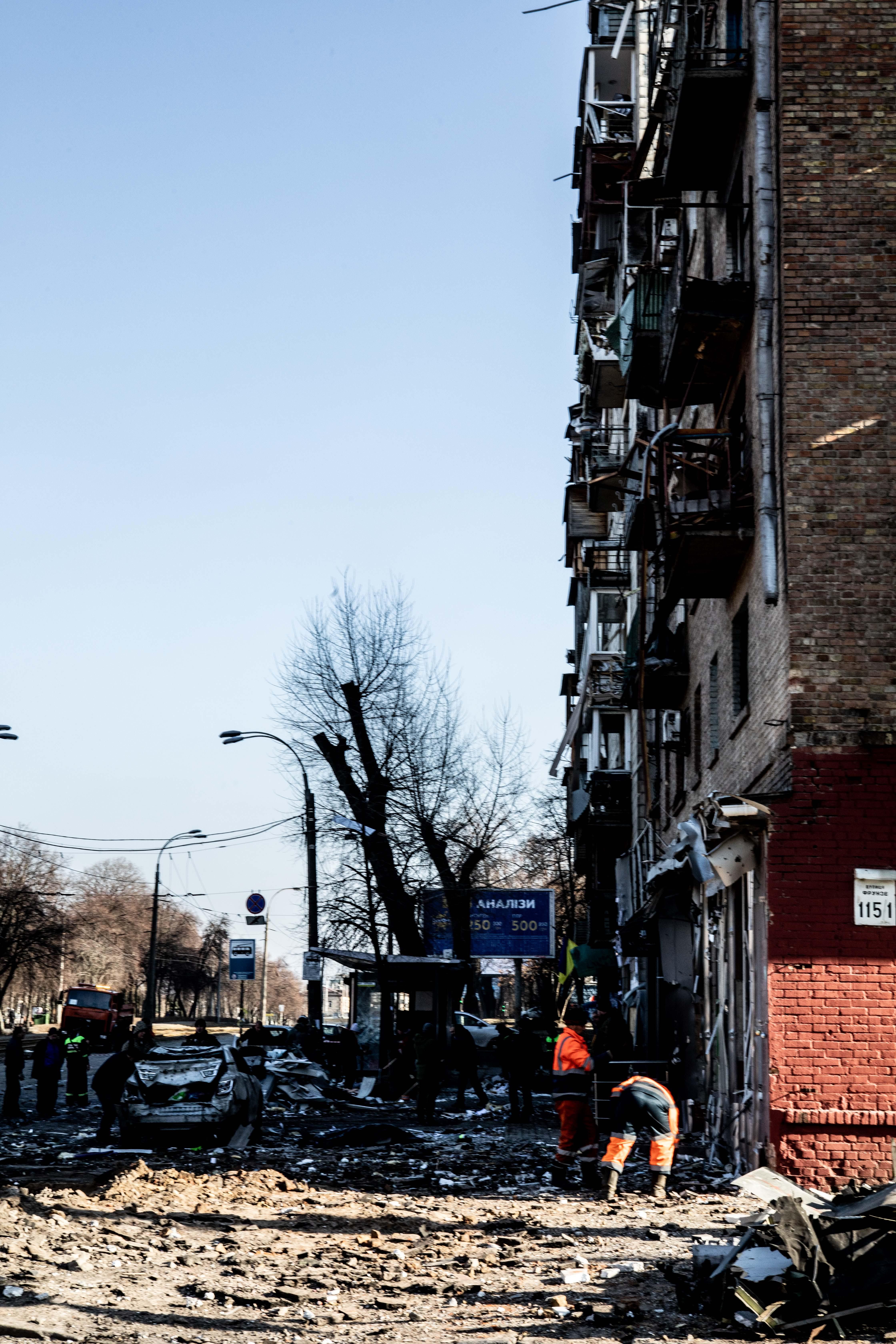 Ne troviamo alcuni vicino al punto dell’impatto, alcuni parlano alcuni sono con il naso all’insù a guardare il cielo per individuare altri droni appena sentono un rumore sospetto, e pronti a dare l’allarme.