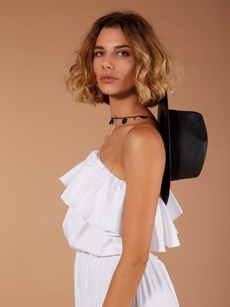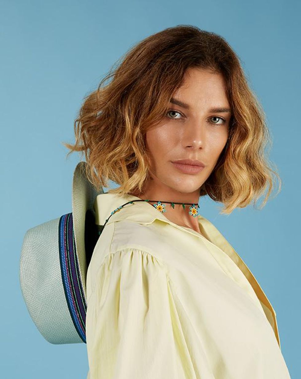 «La collana è stata pensata per la barca o per il mare, in modo da tenere il cappello dietro alla testa senza che voli via. In città mi piace pensarlo con la collana slegata dal cappello e indossata intorno al collo o attorno al polso come due braccialetti».