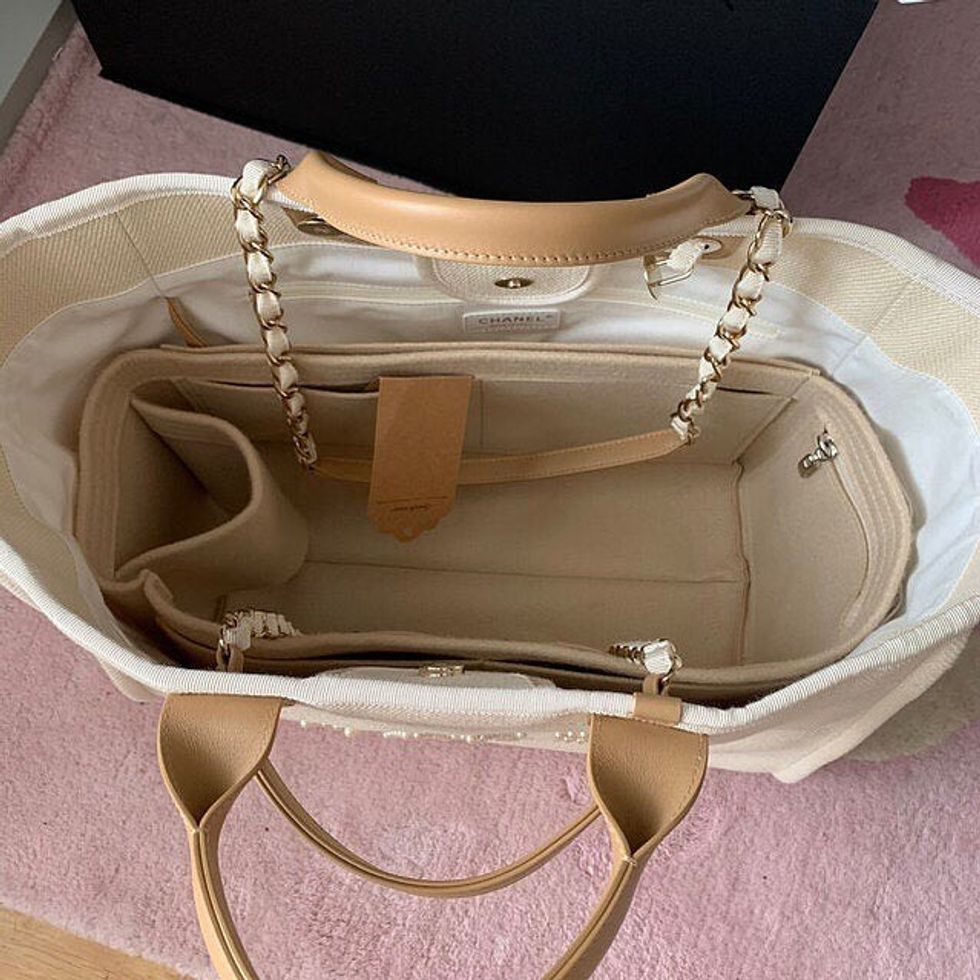 Ma cos'è un organizzatore da borsa? Si tratta di un accessorio in feltro che segue la forma delle borse più popolari, da Louis Vuitton a Dior, passando per Prada e Hermes. Dotati di tasche e scomparti ben definiti, offrono alle clienti un luogo dove mettere ognuno degli oggetti di cui non possono fare a meno. Portafogli, telefono, occhiali, ma anche rossetto, taccuino e penne, tutto ha il suo posto.