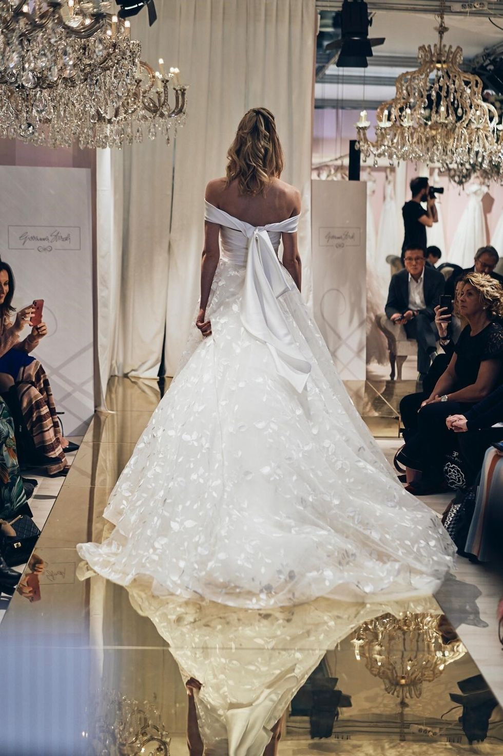 L'abito da sposa sostiene la sua centralità diventando voluminoso, importante, vaporoso, persino ingombrante. Così insegnano le sfilate di alta moda parigine. Complice il tulle che si gonfia in effetti suggestivi, si sovrappone, gioca la leggerezza del plissé. Tulle per il corpetto e tulle per la gonna che, come una nuvola suggestiva punta sul bianco, ma a volte anche sul rosa fino a toccare punti di fucsia.