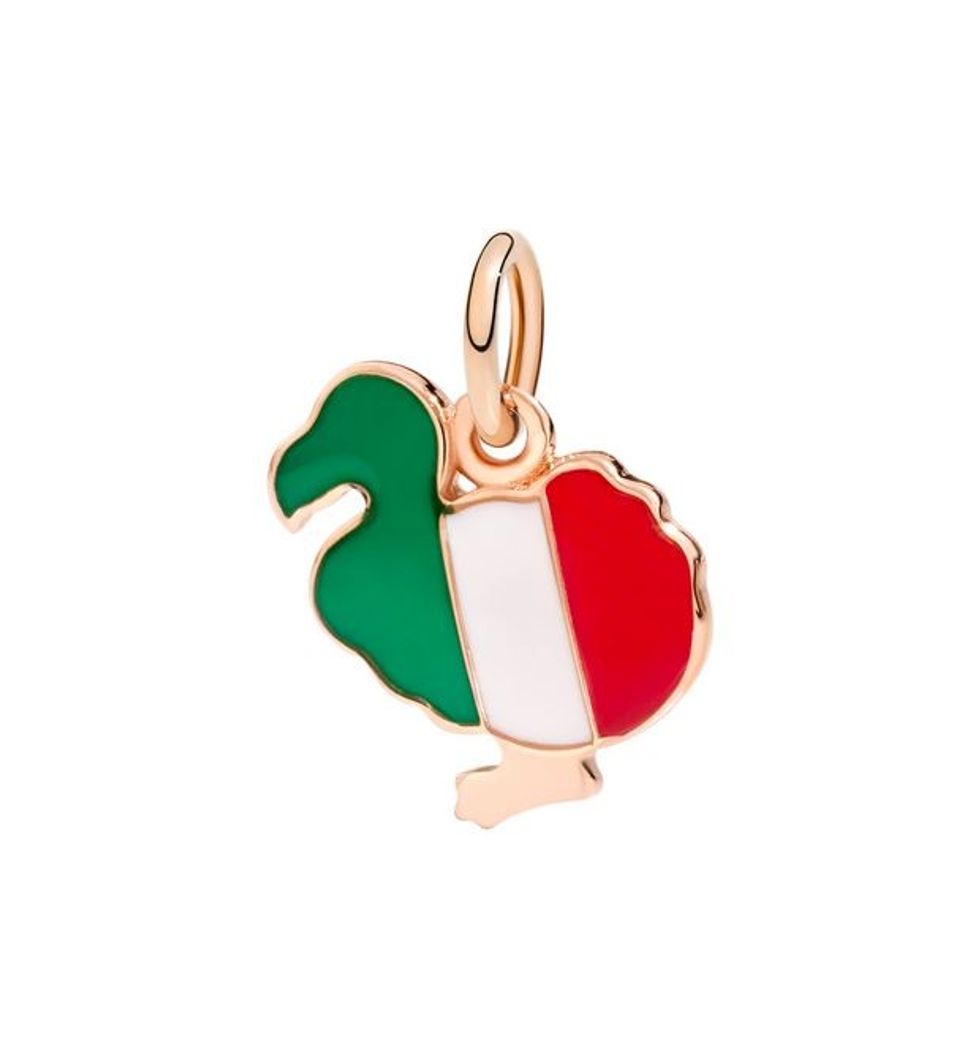 Dodo rende omaggio all’Italia e agli italiani con una capsule collection dedicata all’orgoglio italiano chiamata «Italian Pride»: i quattro charm in oro rosa 9K - il dodo, il quadrifoglio, il cuore e l’ape - con i leggendari colori della bandiera italiana.