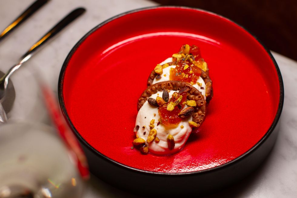 Dinner Tasting Menu Fish (2-8 maggio) (60€): avocado slice affettato e condito, con semi misti e melograno; cevice di ricciola con leche de tigre, sedano, passion fruit, coriandolo e peperoncino; cremoso risotto con freschissimi funghi porcini; sfera di cioccolato fondente ripiena di cremosa mousse di avocado e pan di spagna al cacao, sotto un caldo coulis di amarene; succo a scelta.