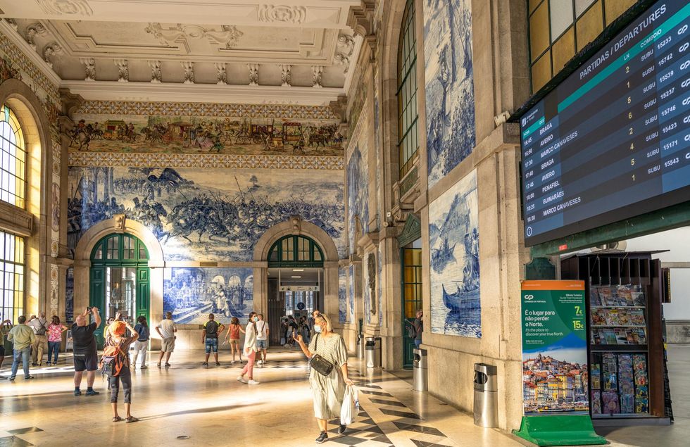 Proseguite lungo Rúa das Carmelitas fino a Rúa do Carmo. Qui prendete il tram d'epoca nº 22, che passa davanti alla bellissima chiesa del Carmo. L'ultima fermata del tram è Praça da Batalha. Scendete qui e dirigetevi verso la settecentesca Igreja de Santo Ildefonso, con la sua particolare facciata ornata da migliaia di piastrelle bianche e blu. Lasciate Rúa 31 de Janeiro sulla sinistra e dirigetevi verso Rúa Santa Catarina, una delle principali vie dello shopping di Porto. Passeggiate lungo la strada ammirando le vetrine colorate e fermatevi al Majestic Café, un elegante caffè "Belle époque". Se vi sentite un po' affamati, entrate in questo caffè unico per mangiare qualcosa.