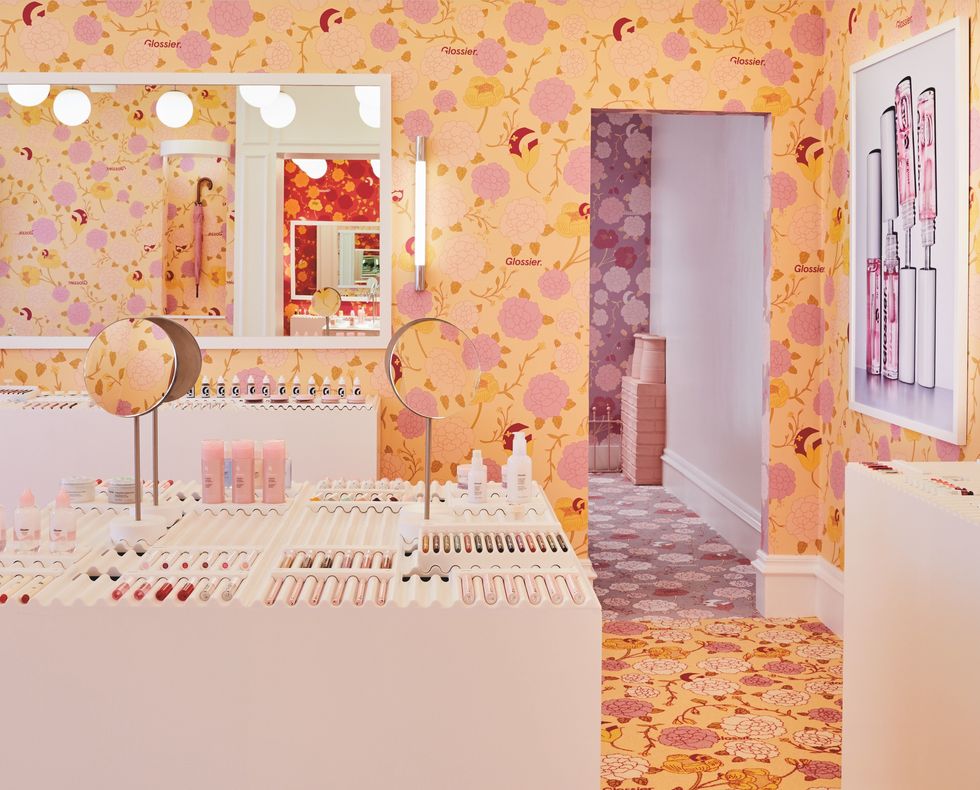 Glossier, il marchio di cosmetici che ha fatto il suo debutto online qualche anno fa ha aperto il suo primo spazio a Londra, a pochi passi da Covent Garden. Il negozio è diviso in quattro stanze caratterizzate dalla carta da parati di colori diversi. Si passa dal rosa al verde, dall'azzurro al rosso, fino ad a arrivare a un giallo brillante. Dalla sua apertura i primi di dicembre, ogni giorno centinaia di ragazze si mettono pazientemente in fila aspettando il loro turno per acquistare rossetti e creme per il viso. Ogni angolo del negozio è il perfetto sfondo per un selfie, ma a catturare l'attenzione è la stanza dove vengono riprodotti i famosi tetti di Londra, color rosa pastello. Le foto scattate sono migliaia.