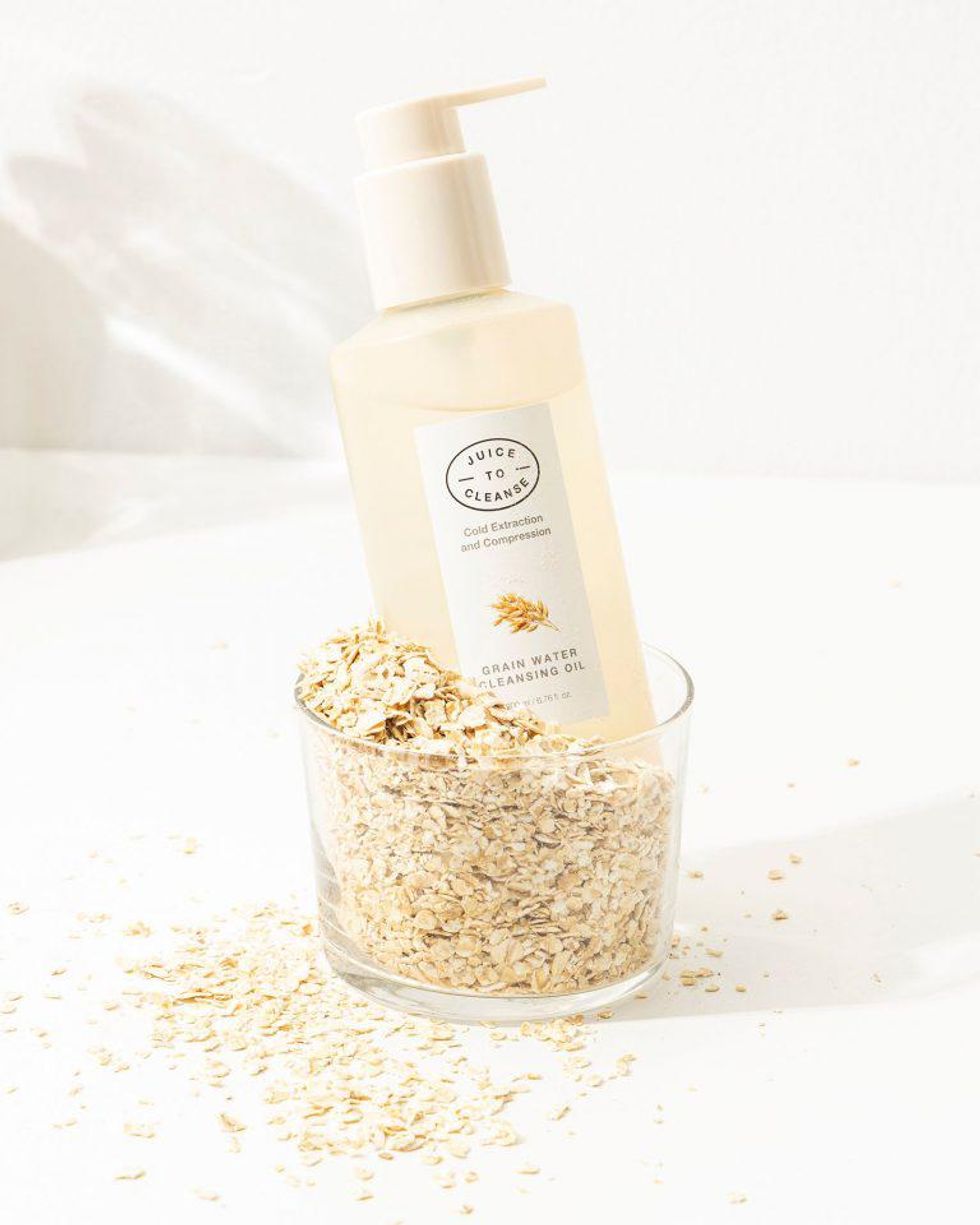 Il prodotto consigliato da Miin Cosmetics. «Il Grain Water Cleansing Oil di Juice To Cleanse; un olio detergente ultra leggero con estratti di avena e riso, ideale per tutti i tipi di pelle. La sua formula è a base di olio di crusca di riso, pieno di antiossidanti e vitamina E, ed estratti di avena, che regola la produzione di sebo senza seccare. Inoltre, contiene anche una delle famose “ricette” di Juice to Cleanse: estratti di papaya e rosmarino, oli di arancia dolce, albero del tè e lavanda, e succo di cocco, cavolfiore, cavolo, pera e aloe vera. Un cocktail spettacolare per lasciare qualsiasi pelle morbida, luminosa e idratata, succosa e per niente tesa».