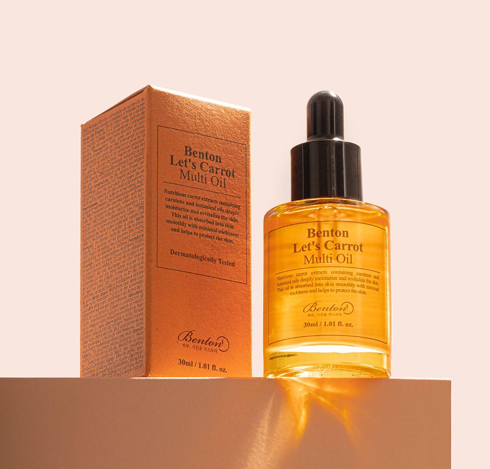 Olio multifunzionale con estratto di carota e betacarotene, per una pelle luminosa e protetta. Tra i suoi ingredienti principali troviamo la Carota sia sotto forma di estratto vegetale, che di olio di semi di carota e di beta-carotene.