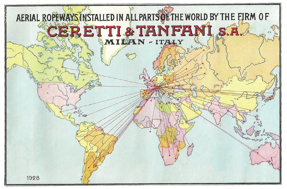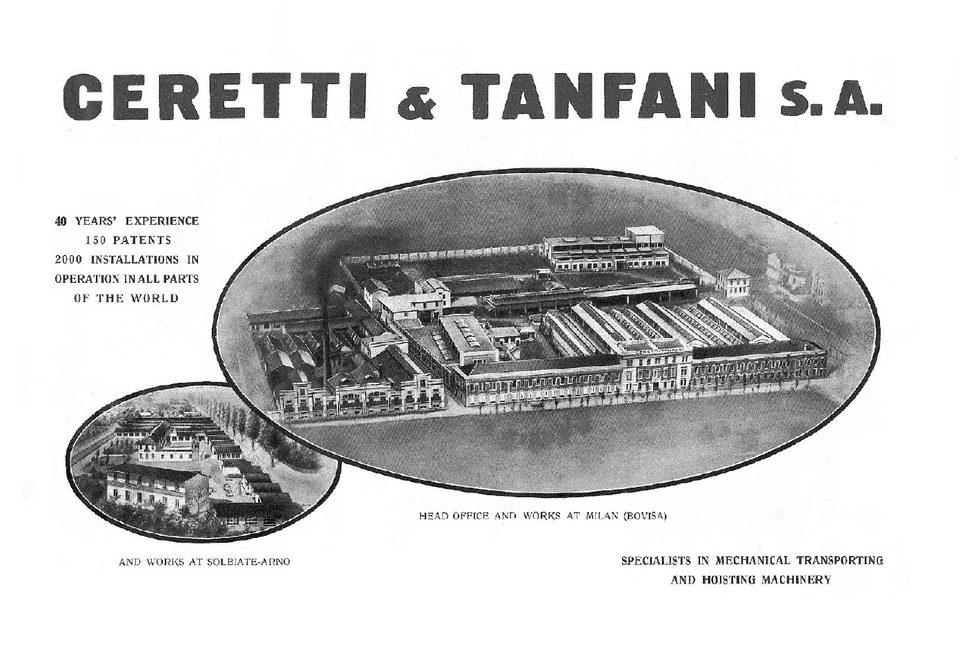 Pontili di carico meccanizzati, mastodontici carriponte, gru dal grande tonnellaggio, impianti a fune realizzati in Paesi lontani. Tutto normale ai giorni nostri, molto meno se si pensa che questa storia si colloca tra la fine dell’Ottocento e i primi anni del secolo successivo. L’anno è il 1894, il luogo il quartiere milanese della Bovisa, i protagonisti gli ingegneri Giulio Ceretti e Vincenzo Tanfani. Siamo nella Milano del positivismo scientifico e della rivoluzione industriale. Le scienze progressive avevano trovato terreno fertile nella recente istituzione del Politecnico, dove si formeranno in seguito gli ingegneri che fecero la storia dell’industria italiana. Passato prima dal politecnico di Zurigo e in seguito all’ateneo milanese dove si specializza nel 1890 in costruzioni meccaniche, Giulio Ceretti assieme al collega anconetano Vincenzo Tanfani muovevano i primi passi verso la costituzione di una società per le costruzioni meccaniche partendo pressoché dal nulla, mossi dall’entusiasmo e dall’eclettismo dell’ambiente fervido che li circondava. Quelli che saranno tra i massimi esponenti dell’ingegneria meccanica in italia e all’estero fecero della creatività il paradigma dei loro primi e poco conosciuti brevetti, che tuttavia rendono l’idea di come i due soci fossero avanti con i tempi. Traccia di queste primissime idee si ha tra le pagine del Corriere della Sera del 1898, anno dei disordini repressi da Bava Beccaris. In quel tempo che appare oggi alquanto remoto, un meccanismo automatico che portava la firma Ceretti&Tanfani comparve in alcuni luoghi pubblici della città. Si trattava di un antesignano sistema antifurto per biciclette automatizzato e regolato da un dispositivo a tempo con gettoniera che, per soli 10 centesimi, garantiva la sicurezza ai pochi ed appetibili velocipedi di Milano. Ma il genio della Ceretti&Tanfani si era già visto, sempre a Milano, quattro anni prima nell’anno di fondazione della società che si fece subito notare da un pubblico internazionale. La cornice era quella della grande Esposizione internazionale 1894 che si tenne nel nuovo Parco Sempione. Tra le attrazioni spiccò una «luftbahn» o ferrovia aerea. Nessuno aveva mai visto nulla di simile quando all’inaugurazione due vagoncini di legno e vimini furono visti volare sulle teste degli spettatori appese ad un cavo d’acciaio a un’altezza di oltre 20 metri in un percorso tra due torri. Era la prima funivia per il trasporto di persone tramite cavo aereo, un divertissement destinato a diventare il principale oggetto di sviluppo del pioniere italiano del settore. Il successo della ferrovia aerea si replicò nelle successive esposizioni, che portarono all’estero il nome dei due ingegneri italiani. L’applicazione pratica era ad un passo e trovò nell’allora amministrazione austriaca della città di Bolzano l’opportunità di vedersi realizzata. Nel 1909 fu costruita la funivia per passeggeri in servizio pubblico, che collegava Lana al colle di San Vigilio su progetto di Luis Zuegg e costruzione Ceretti&Tanfani. La stessa grande opera fu portata lontano nello stesso anno dell’impianto altoatesino in un parco di divertimenti a migliaia di chilometri dalla Bovisa, nel cuore di Osaka in Giappone. Qui la ditta milanese lasciò i visitatori del luna park a bocca aperta quando videro volare i primi passeggeri di una nuova ferrovia aerea che collegava il quartiere di Shinsekai (nuovo mondo) al parco creato sul modello di Coney Island e Parigi, tanto da essere dominato dalla torre Tsutenkaku, ispirata dalla torre Eiffel e sede di una delle stazioni dell’impianto Ceretti&Tanfani che rimase in esercizio fino alla chiusura del parco nel 1923. Quello di Osaka non fu l’unico impianto realizzato nella terra del Sol Levante: alla Ceretti&Tanfani le istituzioni locali nipponiche affidarono la realizzazione di una funicolare per il monte Rokko, luogo di culto nei pressi di Kyoto e nel 1926 una funivia, allora modernissima, al monte Hiei, luogo di culto scintoista.