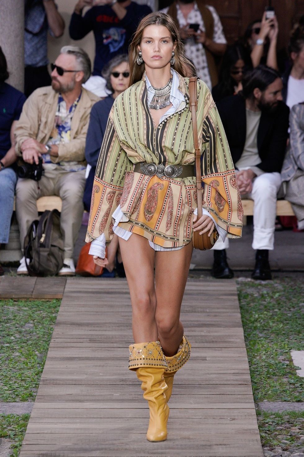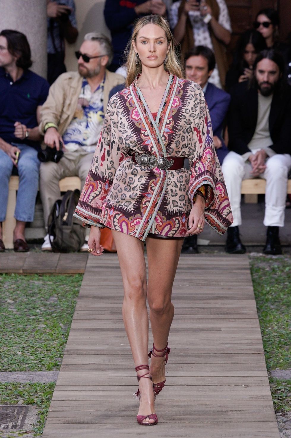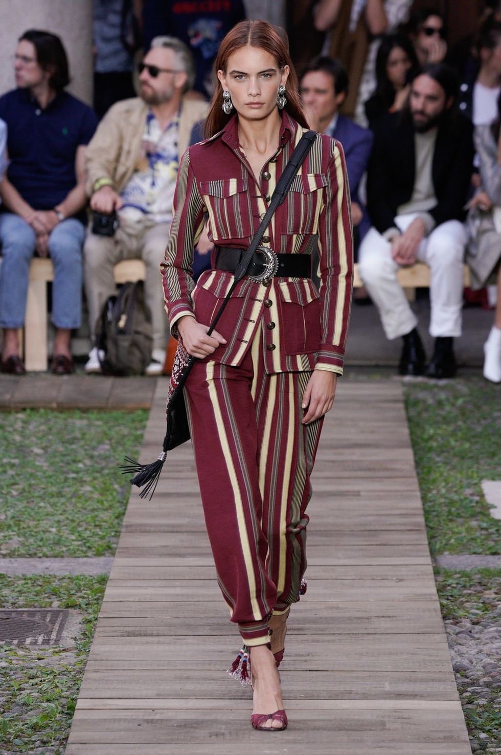 Dalle borghesi alle aristocratiche di Etro, soprattutto, groupie. Per Veronica Etro «è un viaggio intorno al mondo dove coesistono sofisticate piratesse dallo spirito selvaggio e raffinatezza conservatrice, due anime che si mescolano in una sola estetica». E ricorda Anne Bonny da una parte e Marianne Faithfull dall'altra. Motivi ikat e Paisley, righe berbere e ornamenti tribali ne fanno una perfetta hippy anni Settanta che mai dimentica il lato sartoriale della vera eleganza. Una collezione preziosa per tessuti e dettagli, che culmina con un'ultima uscita di camicie maschili, emblema bon ton e pezzo clou della prossima estate.
