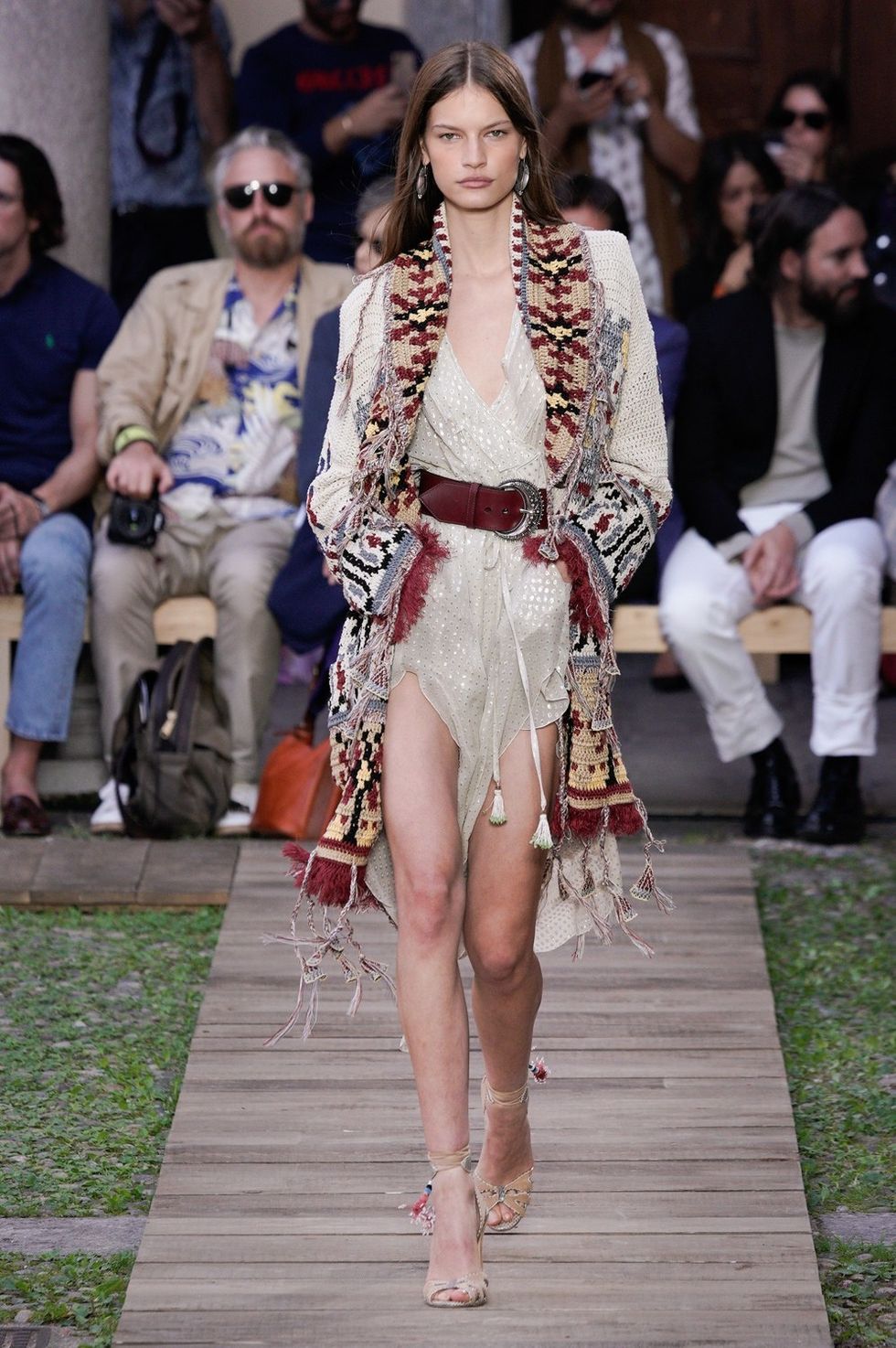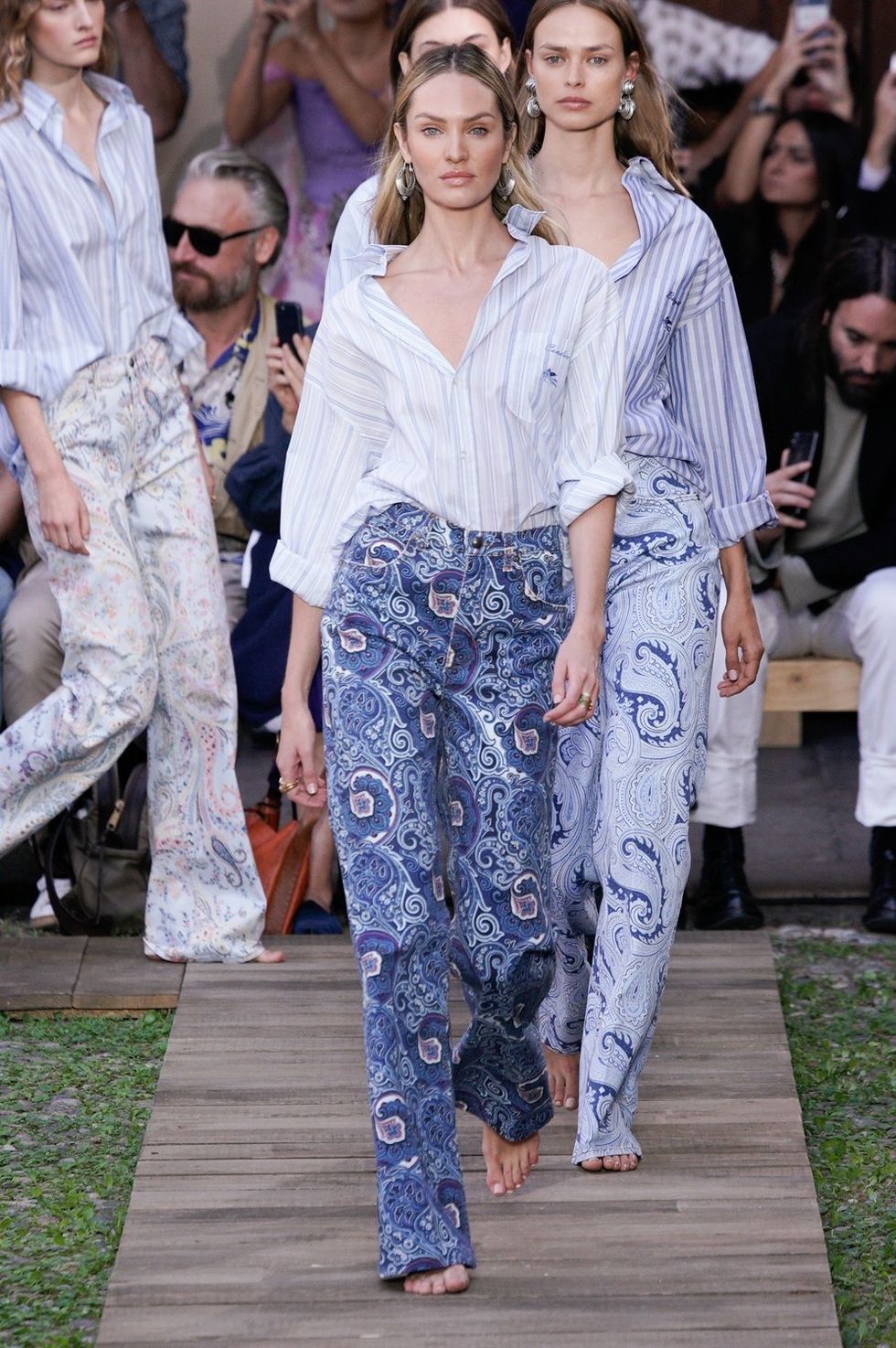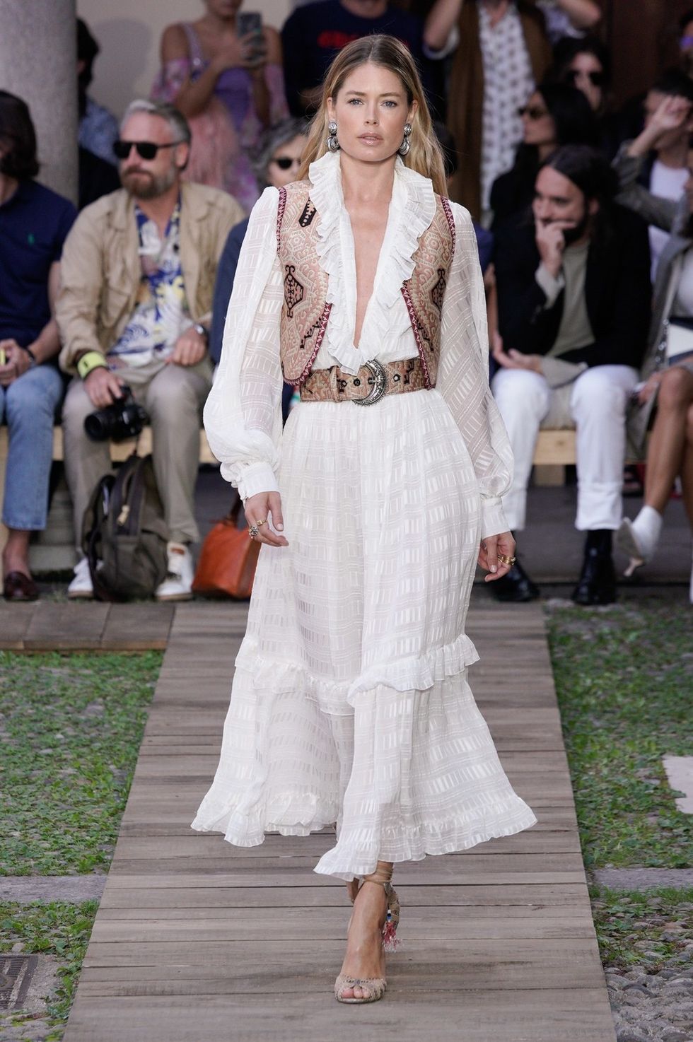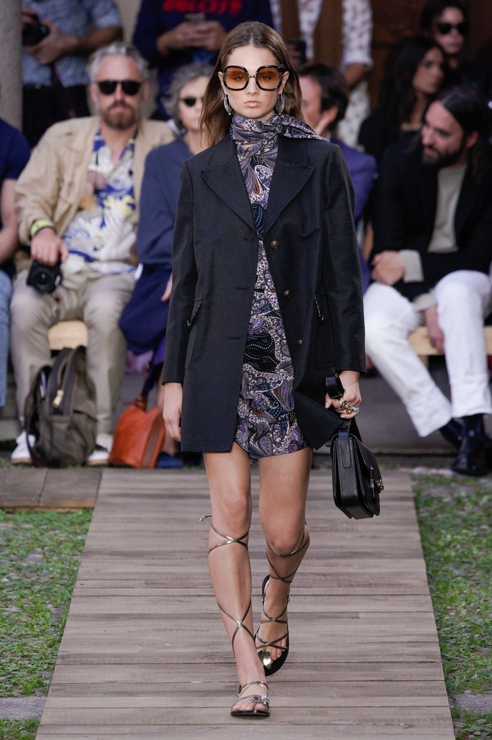 Dalle borghesi alle aristocratiche di Etro, soprattutto, groupie. Per Veronica Etro «è un viaggio intorno al mondo dove coesistono sofisticate piratesse dallo spirito selvaggio e raffinatezza conservatrice, due anime che si mescolano in una sola estetica». E ricorda Anne Bonny da una parte e Marianne Faithfull dall'altra. Motivi ikat e Paisley, righe berbere e ornamenti tribali ne fanno una perfetta hippy anni Settanta che mai dimentica il lato sartoriale della vera eleganza. Una collezione preziosa per tessuti e dettagli, che culmina con un'ultima uscita di camicie maschili, emblema bon ton e pezzo clou della prossima estate.