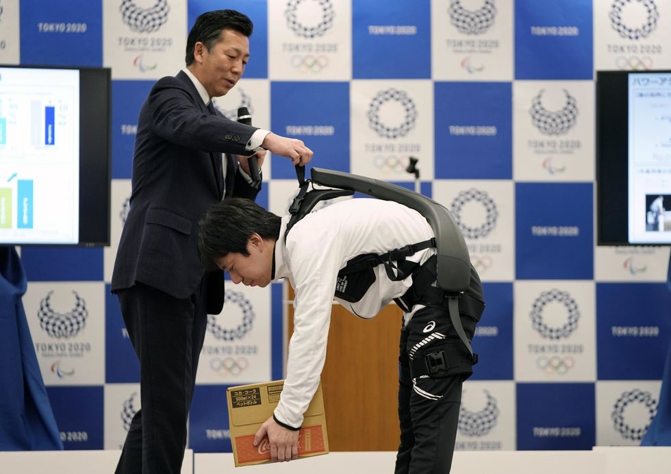 Il marchio di prodotti elettronici, invece, ha sviluppato un esoscheletro denominato Power unit suit, una sorta di tuta da indossare dedicata ai lavoratori impegnati nei vari impianti dove si svolgeranno le competizioni e nel villaggio olimpico. La fornitura di queste tute, 20 in totale, servirà da supporto per il sollevamento e il trasporto di pesi. Le Power unit suit, che saranno utilizzate anche nelle strutture e negli aeroporti correlati alle Olimpiadi, grazie anche a batterie con quattro ore di autonomia, migliorano l'efficienza di circa il 20% e permettono di sollevare circa 10 chilogrammi in più con la stessa energia spesa da un essere umano. «I robot non dovrebbero sopraffare le persone. Possono avere una relazione amichevole con gli esseri umani e possono lavorarci insieme. È questo il tipo di robot che immaginiamo» ha detto il vice direttore generale del comitato organizzatore di Tokyo 2020 Masaaki Komiya. Anche il direttore dei servizi tecnologici Hideyo Hirata si è espresso in merito: «Grazie ai giochi la gente in tutto il mondo potrà comprendere quanto il Giappone sia avanzato in termini di tecnologia robotica». Il direttore generale del dipartimento paralimpico di Panasonic, Yoshifumi Uchida, ha invece sottolineato l'aspetto relativo alla società giapponese affermando che la loro tecnologia è stata sviluppata in parte a causa dell'invecchiamento della popolazione: «Vorremmo avere una società in cui le persone possano lavorare senza preoccuparsi delle differenze di genere o di età. Quando porti una valigia o una scatola pesante, è qui che la tuta robotica diventa preziosa».