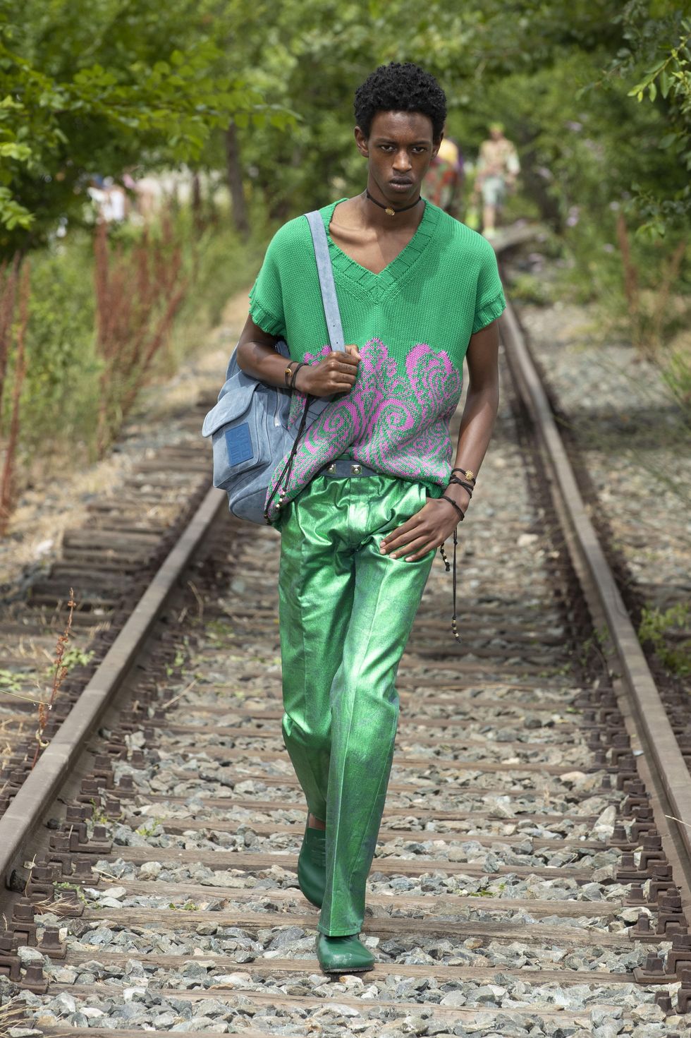 L'omaggio a Franco Battiato di Kean Etro è iniziato con la musica della sfilata Etro, una delle tre in presenza di tutta la fashion week milanese dedicata all'uomo, aperta con L'era del cinghiale bianco e finita con Cuccurucucu. Tutti cantavano sulle onde delle famose ed eterne canzoni del grande maestro siciliano. «Lo conobbi nel negozio di mia madre» racconta lo stilista. «Comperava tessuti antichi, era attratto da quelli persiani. In comune abbiamo il nomadismo, il nomadismo dell'anima». La presentazione allo Scalo Farini, luogo dismesso in attesa di una riconversione, dove i binari ormai senza meta, sono stati la passerella di bellissimi indossatori, indifferenti al caldo torrido. «Siamo in un luogo dove non c'è un inizio né una fine però tutto inizia là dove finisce». La collezione «ha uno spirito agrumato, vitaminico, energetico, ottimista. Il condensato di un sentire senza troppe regole e senza una dimensione di marketing» Tutto è gioia di vivere che Kean ha espresso in camicie in georgette impalpabili portate su pantaloni metallici in canvas spalmato, felpe in cady di seta, caftani. Si può essere certi che lei ruberà nell'armadio di lui pezzi di grande fascino ed emozionanti. E i Maneskin, vestiti Etro sia a Sanremo che all'Eurofestival? «Con i ragazzi ci siamo messi a galoppare in una nuova direzione. Rock che fa parte di noi, rock metafisico».