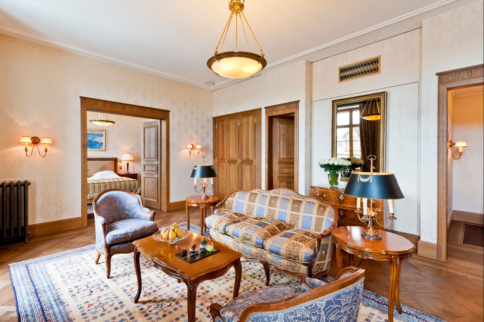 Dall'hotel è possibile godersi la vista spettacolare del Reno all'alba o ammira il riflesso delle luci sull'acqua all'imbrunire, mentre lo chef Peter Knogl - tre stelle Michelin e 19 punti Gault Millau - gestisce il ristorante Cheval Blanc creando un'armonica sinfonia di aromi, colori e sapori. Le 101 camere e le 18 suite sono arredate con opere d'arte dal valore inestimabile e tutti i comfort.