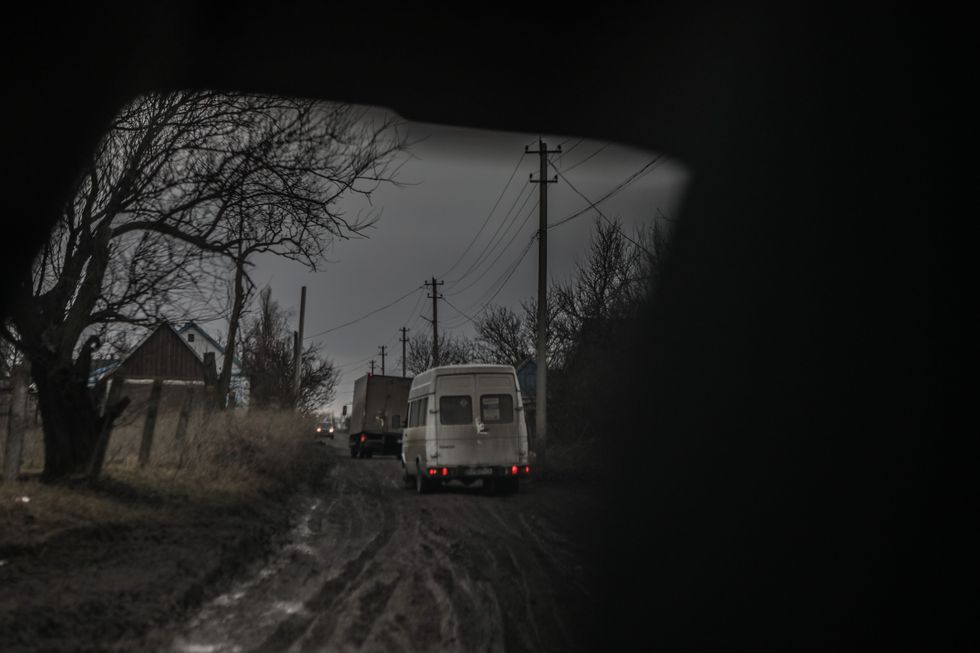 Molti giornalisti partono dal nostro albergo all’indomani di primo mattino, noi aspettiamo gli accrediti per avvicinarci al fronte ma anche oggi non ci sono le condizioni per entrare a Bakhmut, così usciamo dall’hotel per andare verso Kramatorsk e ci imbattiamo in quattro soldati che stanno mangiando un tozzo di pane sotto una pensilina, non lontano dall’hotel. Sono appena scesi dalla jeep che proviene dal fronte, come se dovessero respirare nel primo punto più sicuro che hanno trovato lungo la via. Hanno le facce nere dalla terra e i vestiti sporchi di fango, appena vedono la macchina fotografica ci urlano un secco «niet». Non possiamo far altro che rispettare il loro momento, immaginando la notte che devono aver passato.
