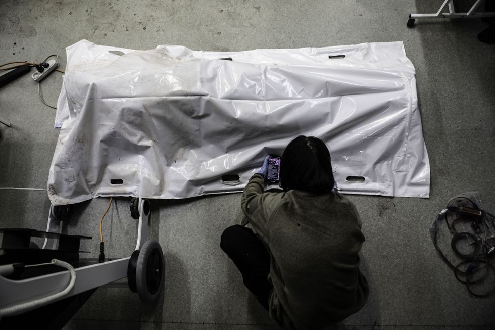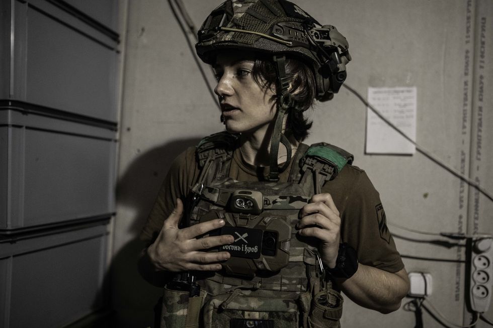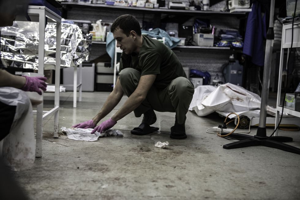 Si danno il cambio in tre perché bisogna tenere il ritmo giusto e non è facile; altri cercano di tamponare le ferite sul collo e sul cranio. Sotto il tavolo operatorio il sangue gocciola copioso sul pavimento. Fa caldo: ci sono due grandi riscaldatori elettrici e i medici sono in pantaloncini e maglietta, con il sangue dei soldati sulle gambe, sui piedi, dentro le ciabatte. Non lasciano trasparire alcuna emozione, neanche quando allo scadere dei 50 minuti dichiarano la morte e iniziano a smontare tutte le attrezzature che avevano applicato al corpo di questo ragazzone di più di 100 chili che viene trasferito in un sacco bianco. In un angolo di una stanza adiacente alla sala operatoria una ragazza piccolina, accucciata, scrive al cellulare. È appena uscita dal bagno, dove ha lavato il sangue dalle mani e dal corpo. Aspetta di capire se rianimeranno quel soldato che, poco prima, le è morto tra le braccia, mentre correvano qui in ambulanza. Anna ha 29 anni, il piercing al naso e due occhi scuri e intensi. Ci dice di venire da Khmelnytskyi, nell’Ovest del Paese, ma quando è scoppiata la guerra faceva servizio sulle ambulanze a Odessa e così, avendo una buona esperienza, è entrata nella brigata più acclamata e famigerata (all’estero) dell’Ucraina.