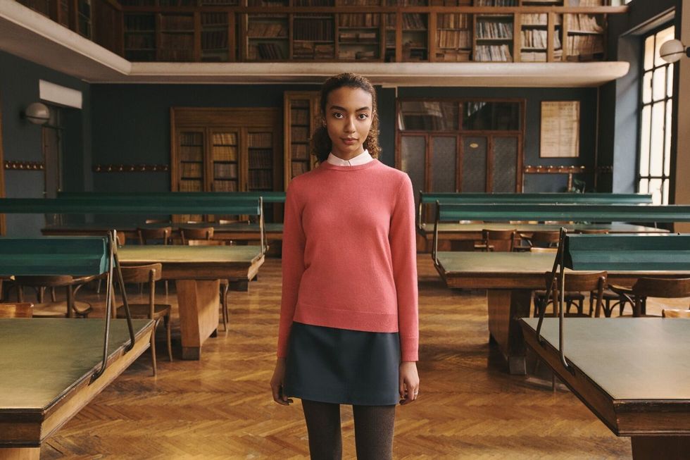 Alessandra Bisogni, modella, indossa il maglione cashmere girocollo (89,90 euro) disponibile in 50 variazioni di colore