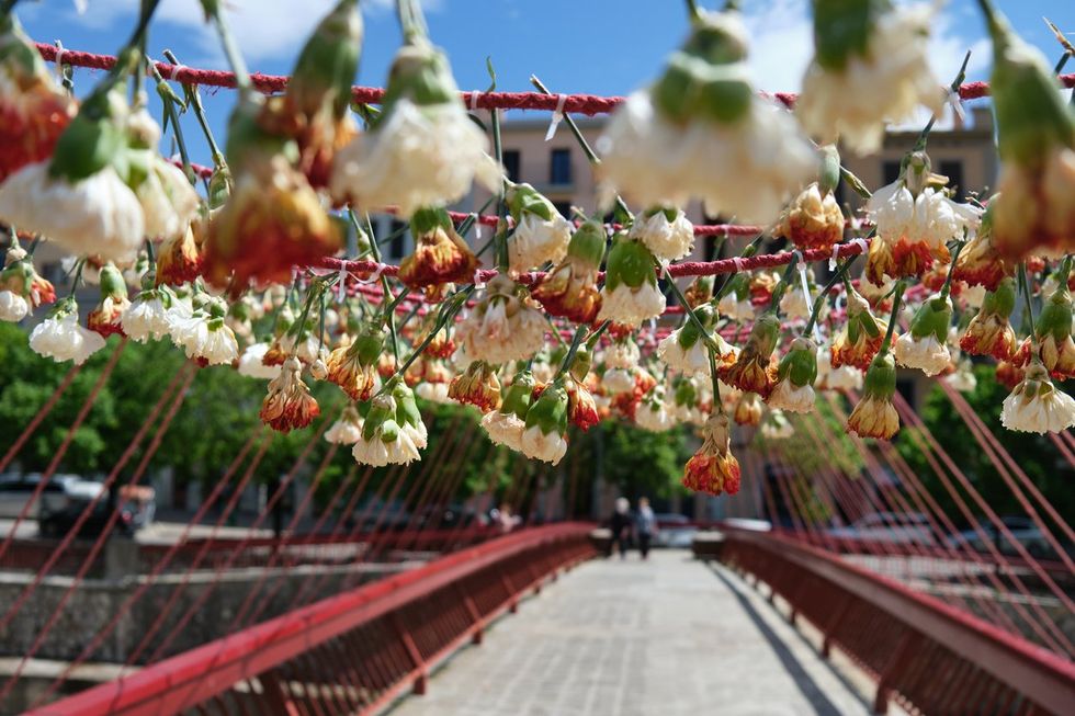 Il nucleo medievale di Girona si trasforma in un paradiso dei fiori. Tra installazioni artistiche, tappeti di fiori e sculture, tutto il centro della città esplode di colori e profumi ogni maggio. Anche i gradini di cemento della cattedrale si trasformano in una cascata di fiori colorati. Parallelamente, il Girona A Cappella Festival invita gli amanti della musica a coinvolgere tutti i sensi mentre il suono, l'odore e la vista della primavera riempiono la città.